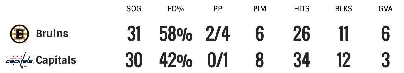 Late in the period, David Pastrnak got the Bruins on the board on a 5 on 3 power play. 2-1 Caps.