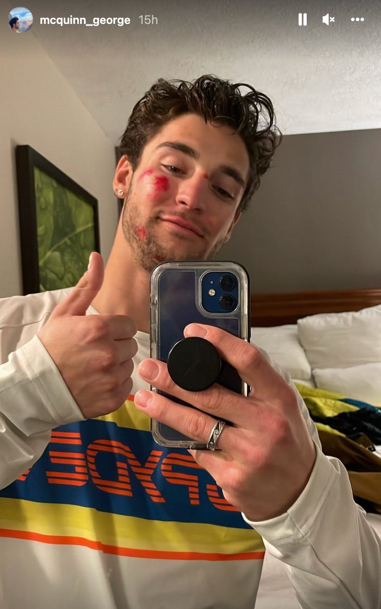 Later that night, McQuinn let his fans know that he was okay after the "gnarly crash" -- posting video of the incident on his IG and a photo of his facial injuries with a thumbs up.