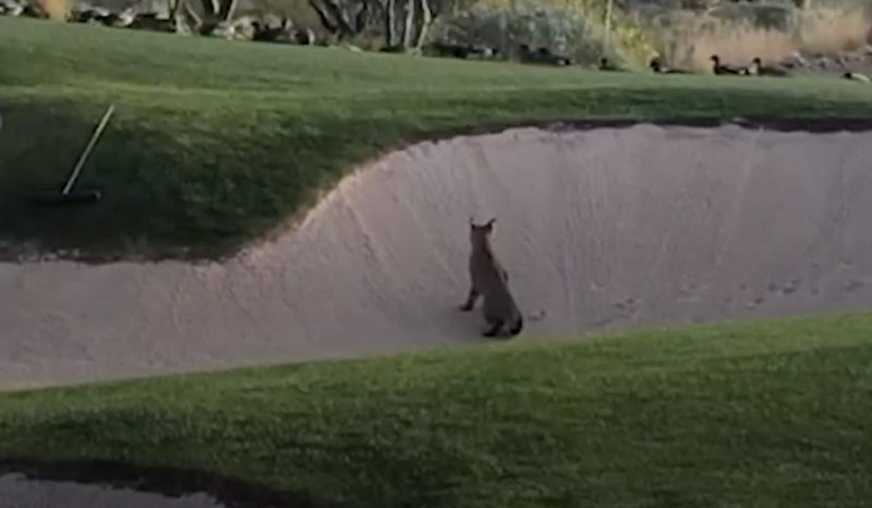 Wild Video Of A Bobcat Using A Bunker To Hunt Birds In Front Of A Bunch Of Golfers