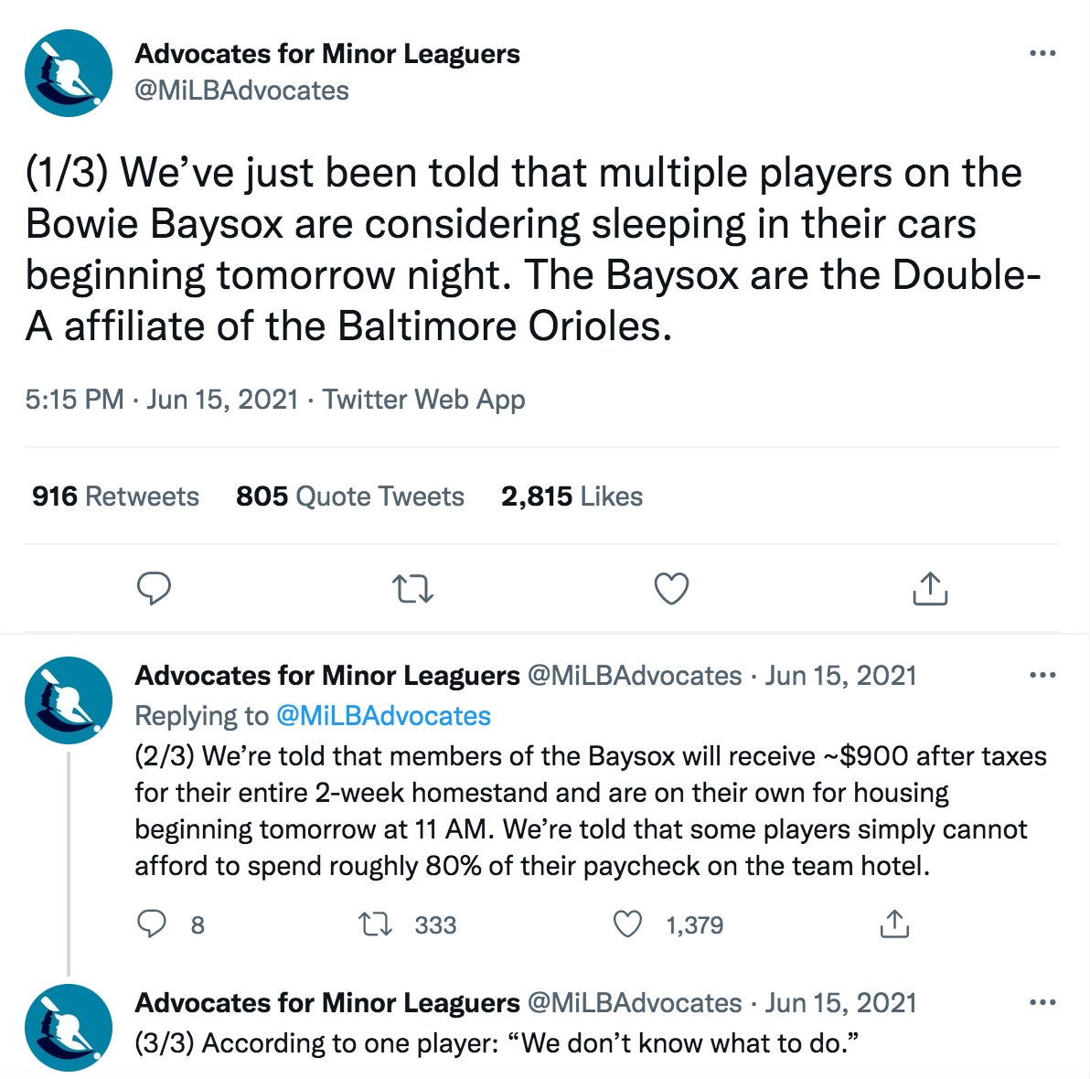 Again, this wasn't an Orioles issue, it was a baseball issue. It's nuts that this is still a thing. Providing housing like the picture above shouldn't be an exception, it should be the standard. And this comes on the heels of the Nationals, Dodgers, White Sox, and Twins demanding their minor leaguers pay their clubhouse dues, something that MLB said it was getting rid of in 2020.