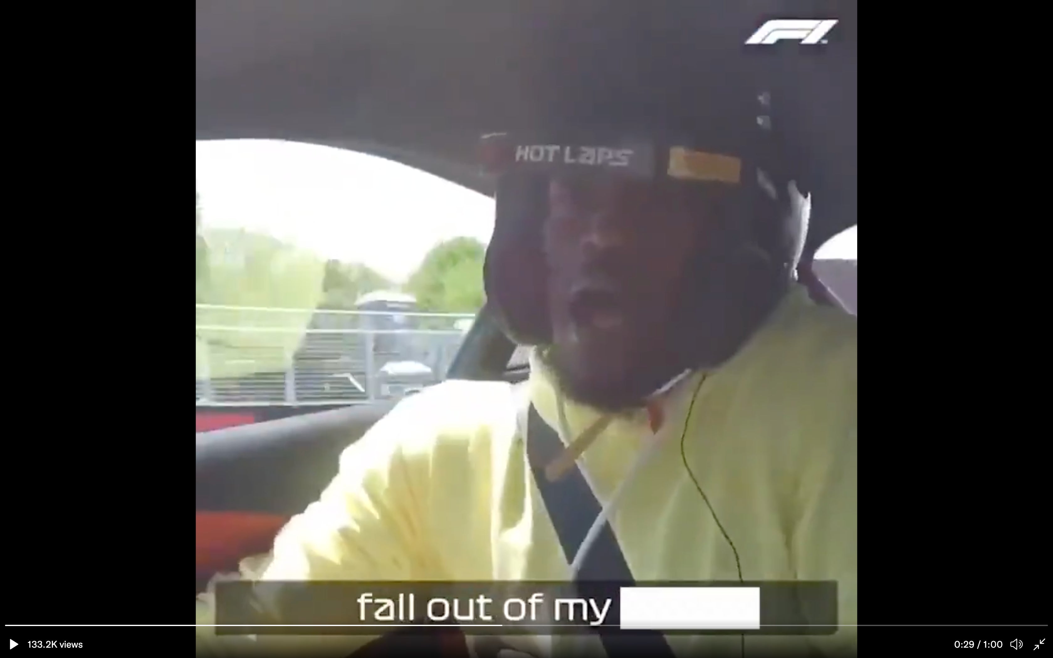 Yelling "let me out" while Lando's McClaren does 210 on the straightaway was hilarious.