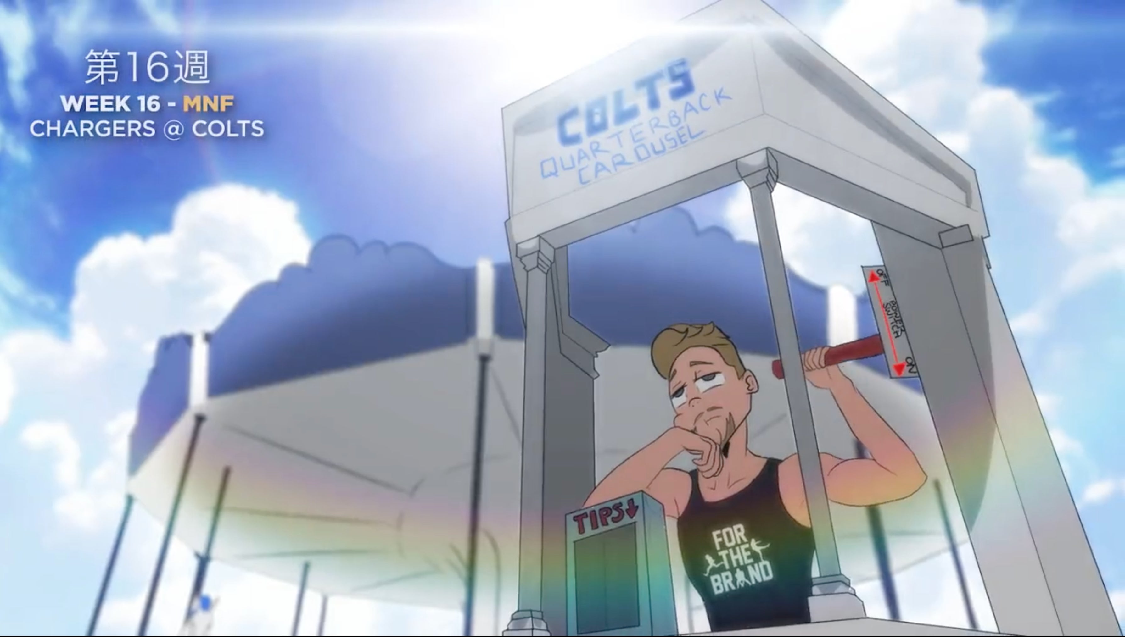 Love the little McAfee shoutout. Also loved them making giving the Philip Rivers horse a bolo tie instead of a number.