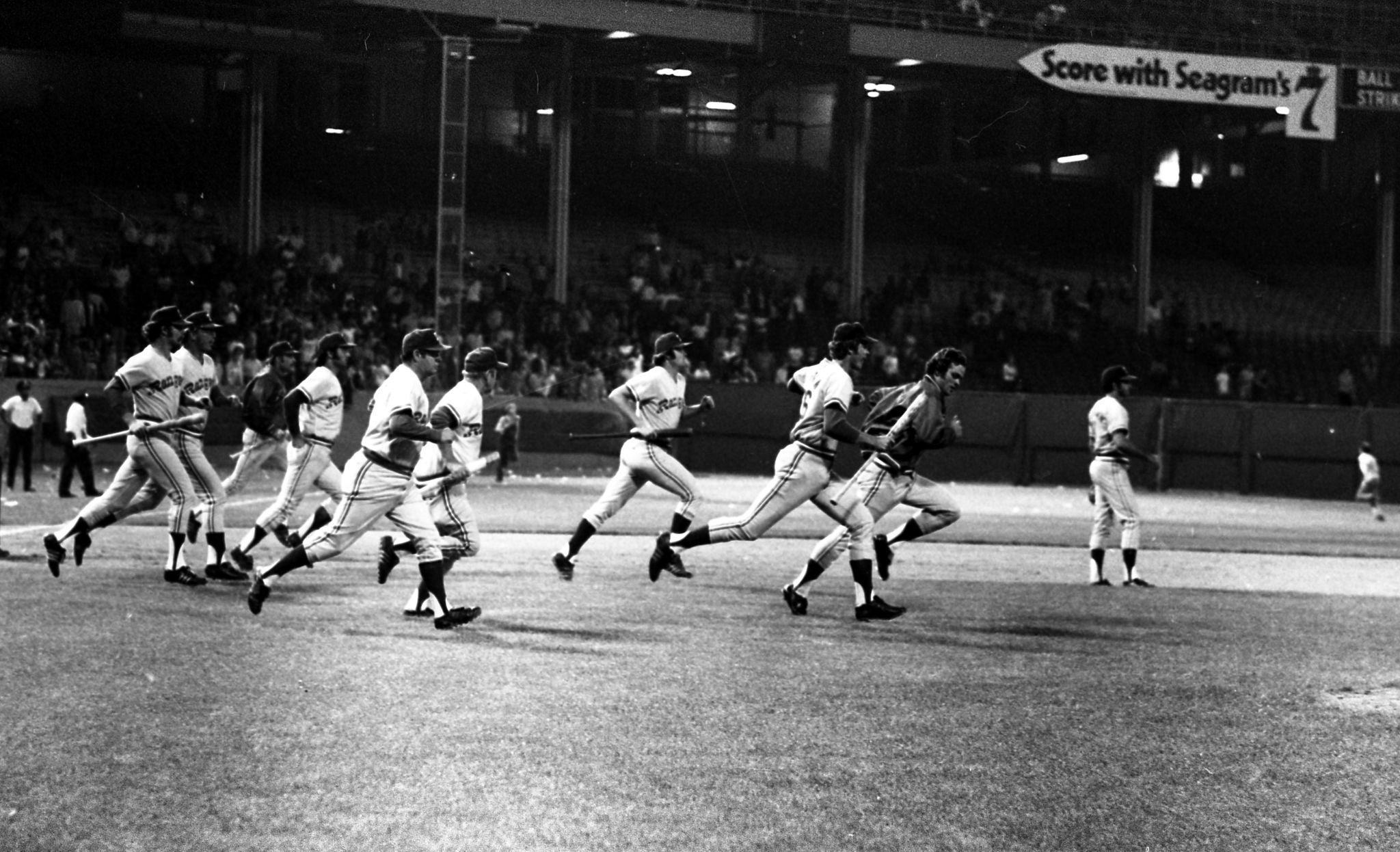 The two teams retreated off the field, one protecting each other from the inebriated fans. Umpire Nestor Chylak, the crew chief who was struck in the head with a stadium seat and had his hand cut by a rock, had no choice but to call the game a forfeit win for the Rangers. The Indians would run another ten-cent beer promotion later in the season but had a two-beer limit for the discounted prices. It would be the last such promotion, as baseball banned further ten-cent beer nights.