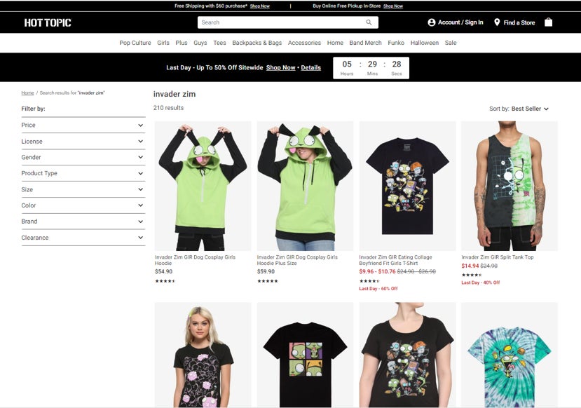 - The Hot Topic website has an even better selection than the store. There are 7 pages of Invader Zim merchandise.
