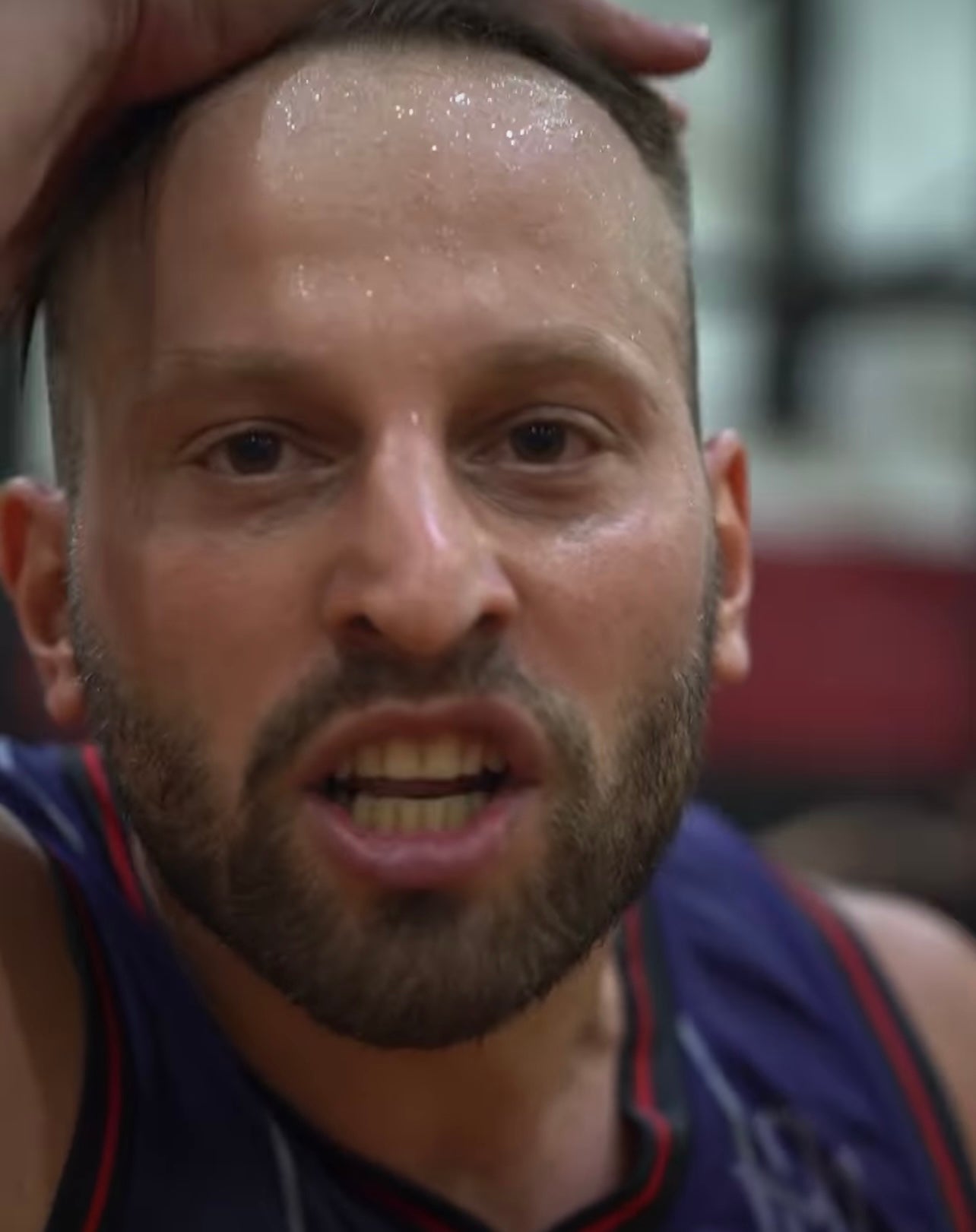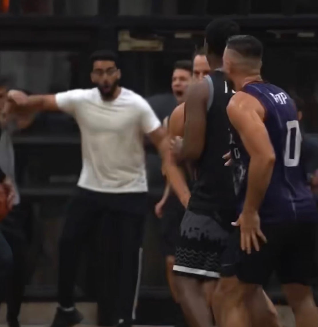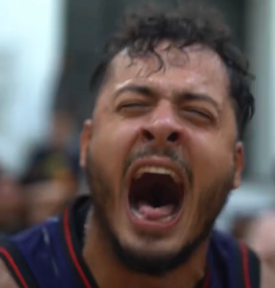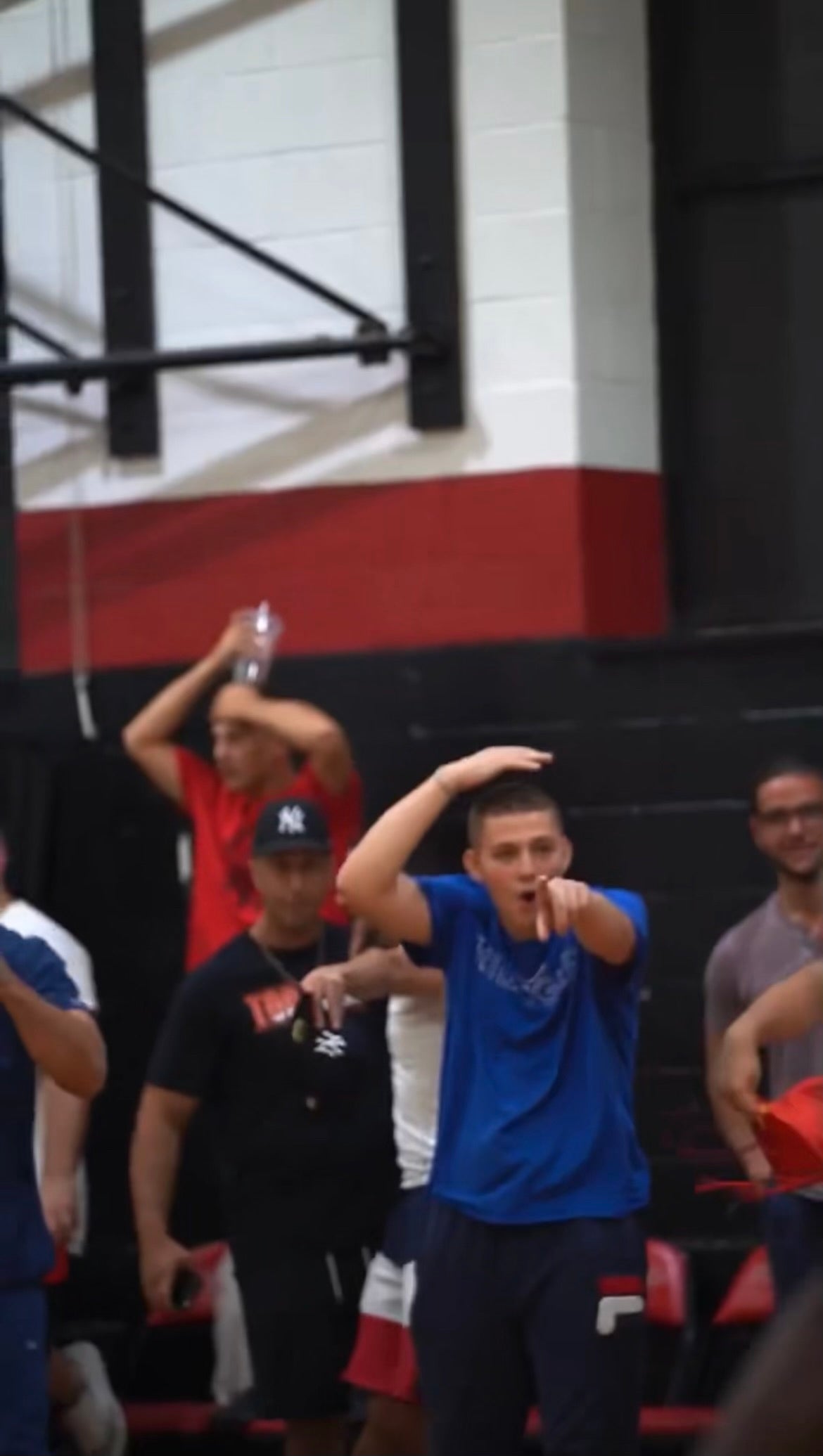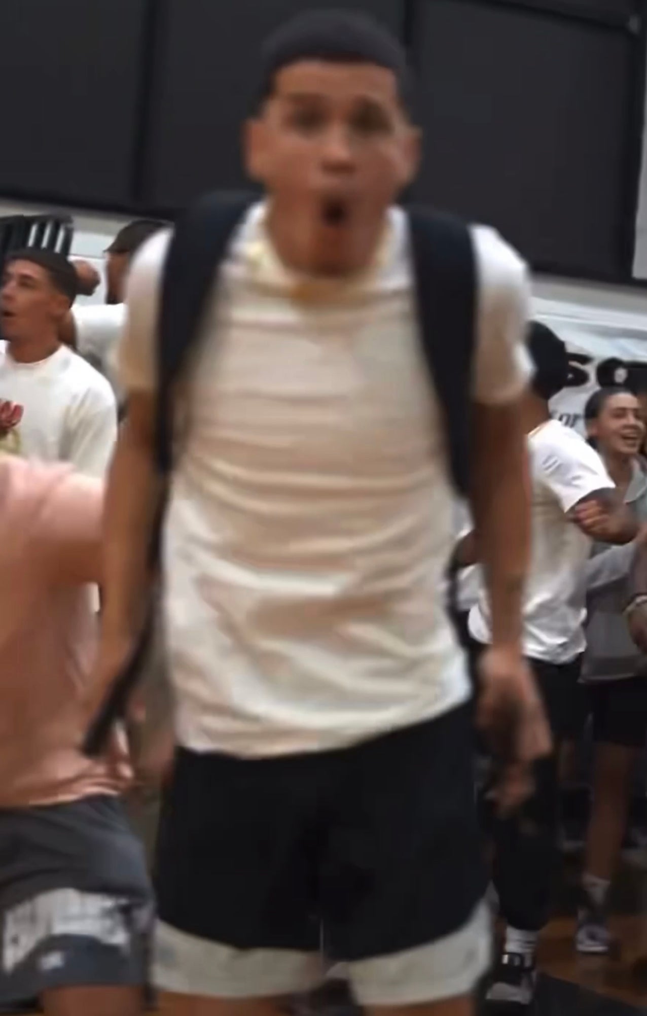 That is the face of a madman. He without a doubt got a tech in the game, trash talked all night yet he lived for this moment to celebrate something he didn't have any part in. Gives off Kevin Garnett "Anything is possible" vibes but if Garnett was a lunatic playing men's league who scored 7 points had 6 turnovers and got a tech. Shoutout to this kid though for being super hyped for his boy.