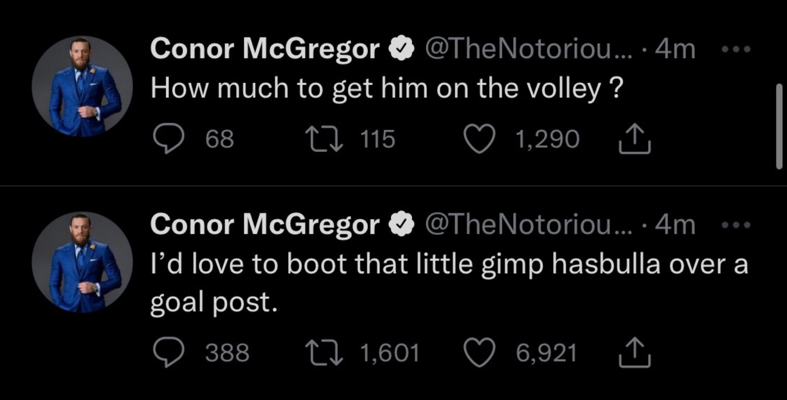 Conor McGregor Says He'd Like To Boot "Little Gimp" Hasbulla Over A Goal Post In A Series Of (Mean) Deleted Tweets
