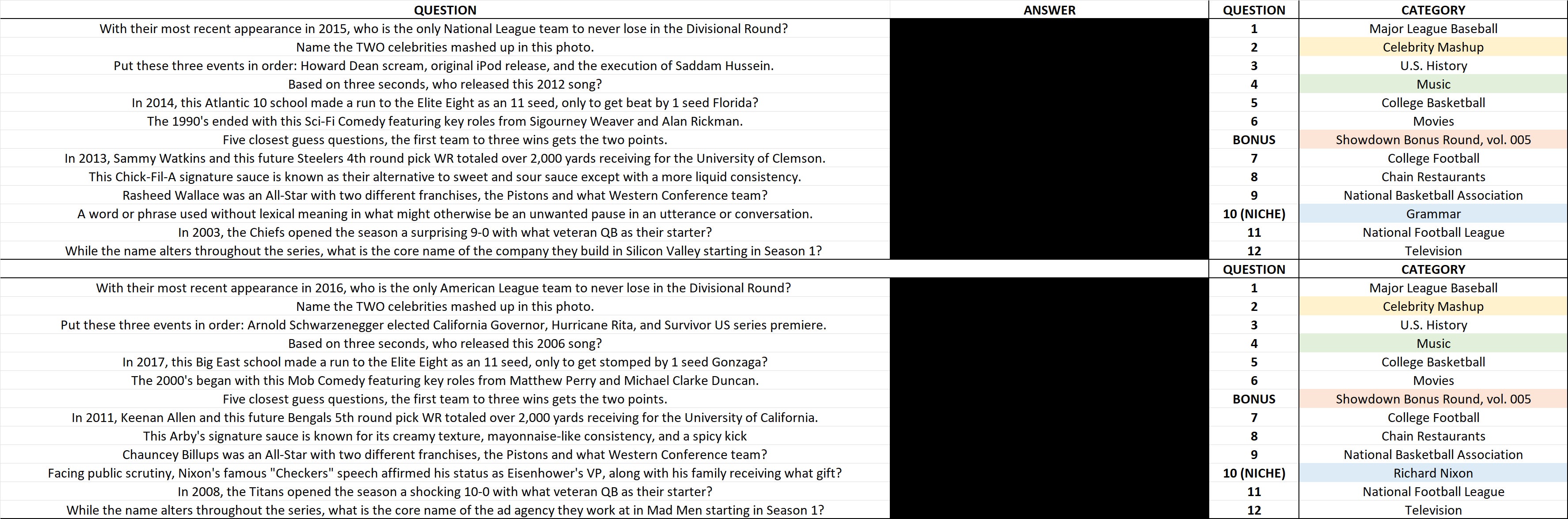 Not exactly a dynamite debut for Francis, but had he gotten the niche category round question correct, he would've scored 4 points. Lots of "could've, should've" for the Honkers who hit on 9 out of 12 questions… but still lost 16-9. On the other side, how about Gen XYZ!? They are now 5-2 all-time with in-person matches. Something about the bright lights really ignites this squad!