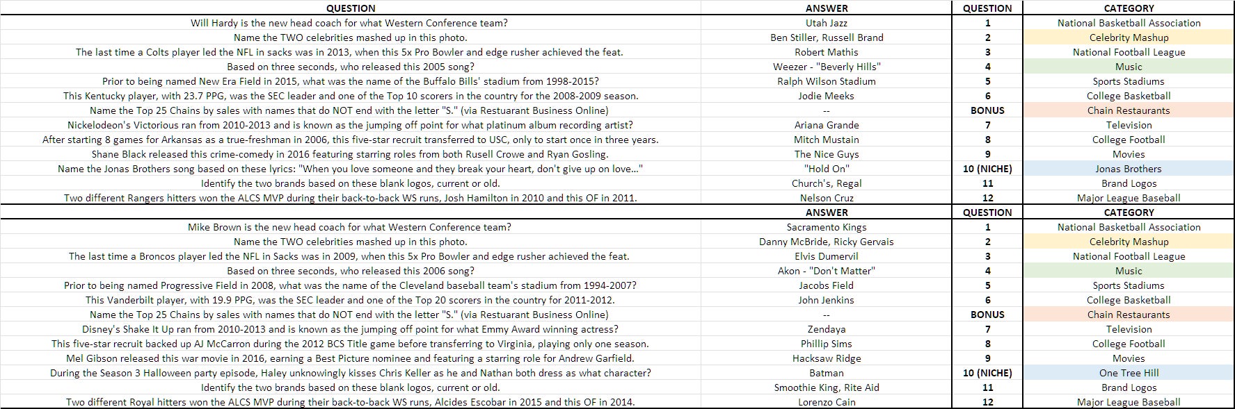 One word: FRAN. Her HUGE 9-point performance propelled The Experts. She is the first player in the history of The Dozen: Trivia Competition to score on three double questions in one match.