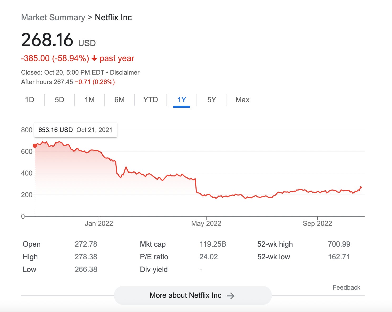 …only down a cool ~60% over the last year. I'm not gonna act like I know the first thing about stocks or money (other than how to spend it poorly) but 60%?