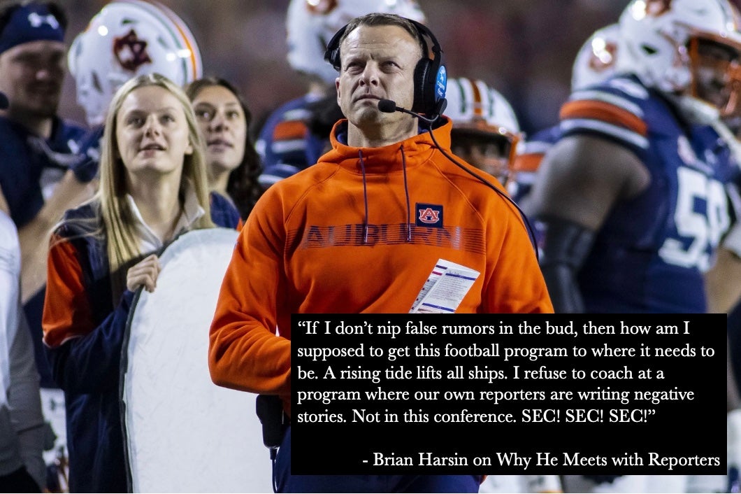 This wouldn't have been the first time Harsin met with a reporter in regards to some negative press. Ever since he was hired at Auburn, Harsin has spent a large chunk of his time tracking down local beat reporters to discuss the merits of their stories.