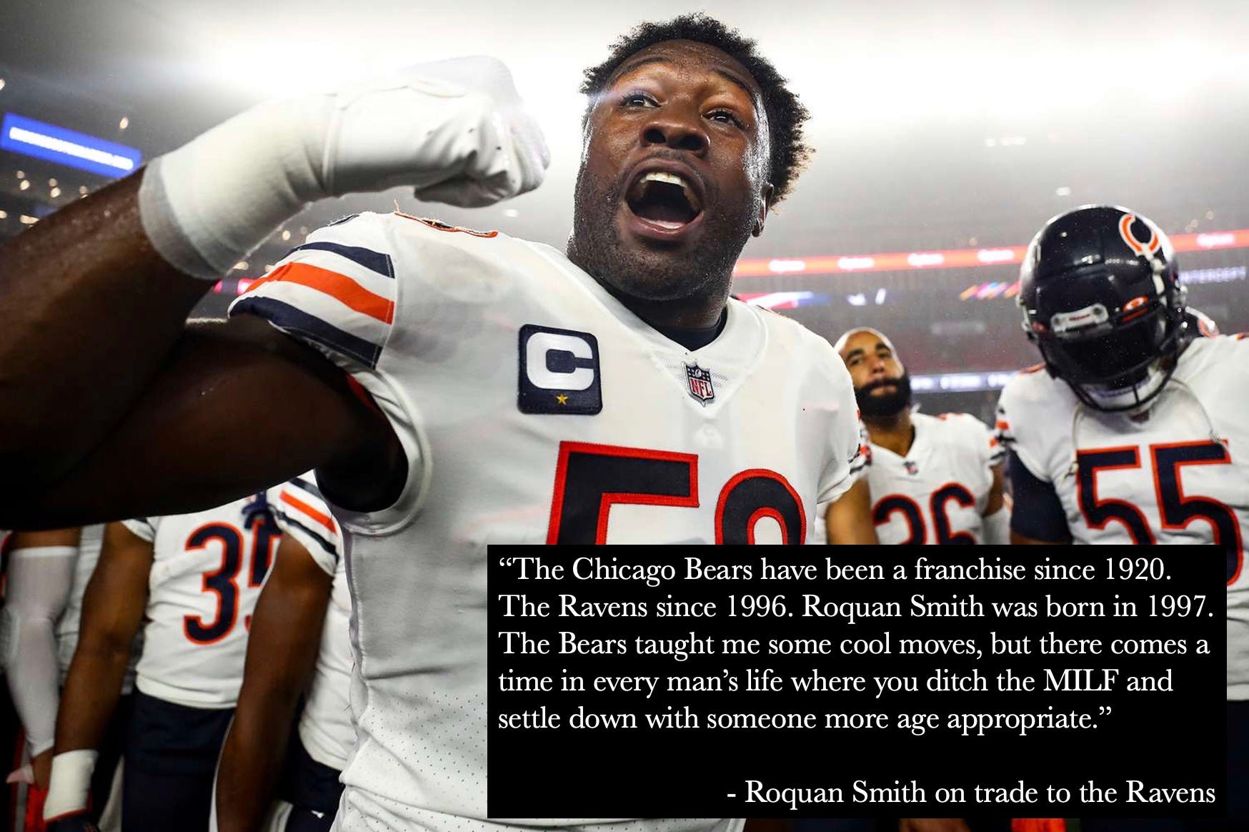 The Chicago Bears traded linebacker Roquan Smith to the Ravens, in exchange for a 2nd & 5th round draft pick. Smith has been vocal about his displeasure with the Chicago Bears front office. Over the offseason, Smith stated that the Bears organization "didn't value him", and accused them of "not negotiating in good faith" when it came to his contract. Today, Smith was traded away to the Baltimore Ravens. He was in high spirits when speaking with reporters this afternoon.