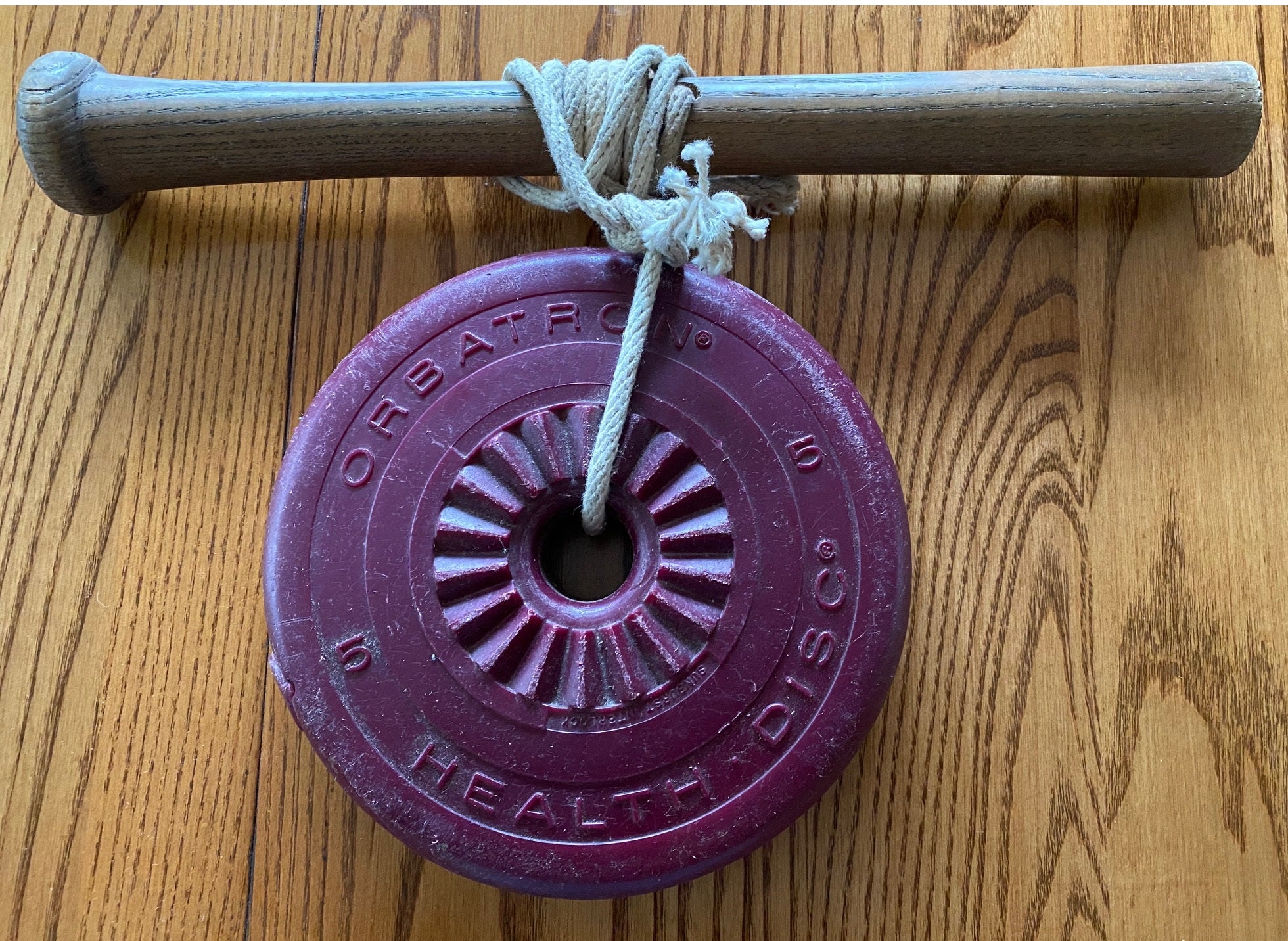 Dan was a big dude, and he had the bench press record for our class; no one came close to challenging him. Drew, who had already earned his black belt, had the wrist roll record. Back in the day, we played baseball with wooden bats, and when one cracked, we'd cut about 14" off at the handle end, drill a hole through the center of it, put a rope through it, knot it at the top, and once the rope was cut long enough to extend to the floor with our arms held shoulder high, we tied a weight to the bottom. Then, we'd extend our arms and roll the rope around the bat until the weight reached the top.