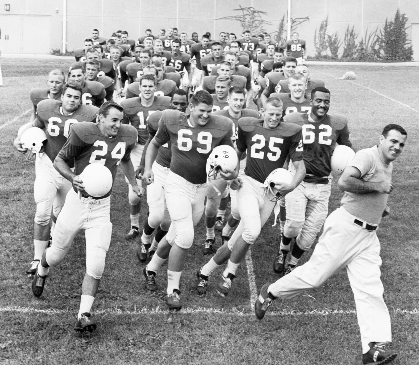 My father had visions (high hopes) of me playing football for the Fighting Irish, and he sent Notre Dame Head Coach Ara Parseghian a letter telling him all about my Pop Warner heroics. He was immediately on board with Abe's offer to train me and he went to Sears and bought a 120 lb. set of plastic, sand-filled weights and a cheap adjustable inclining bench that we set up on a couple of quilted U-Haul moving blankets in our unfinished, dimly-lit basement. The day Abe finished the chart and handed it to my father, I started training.