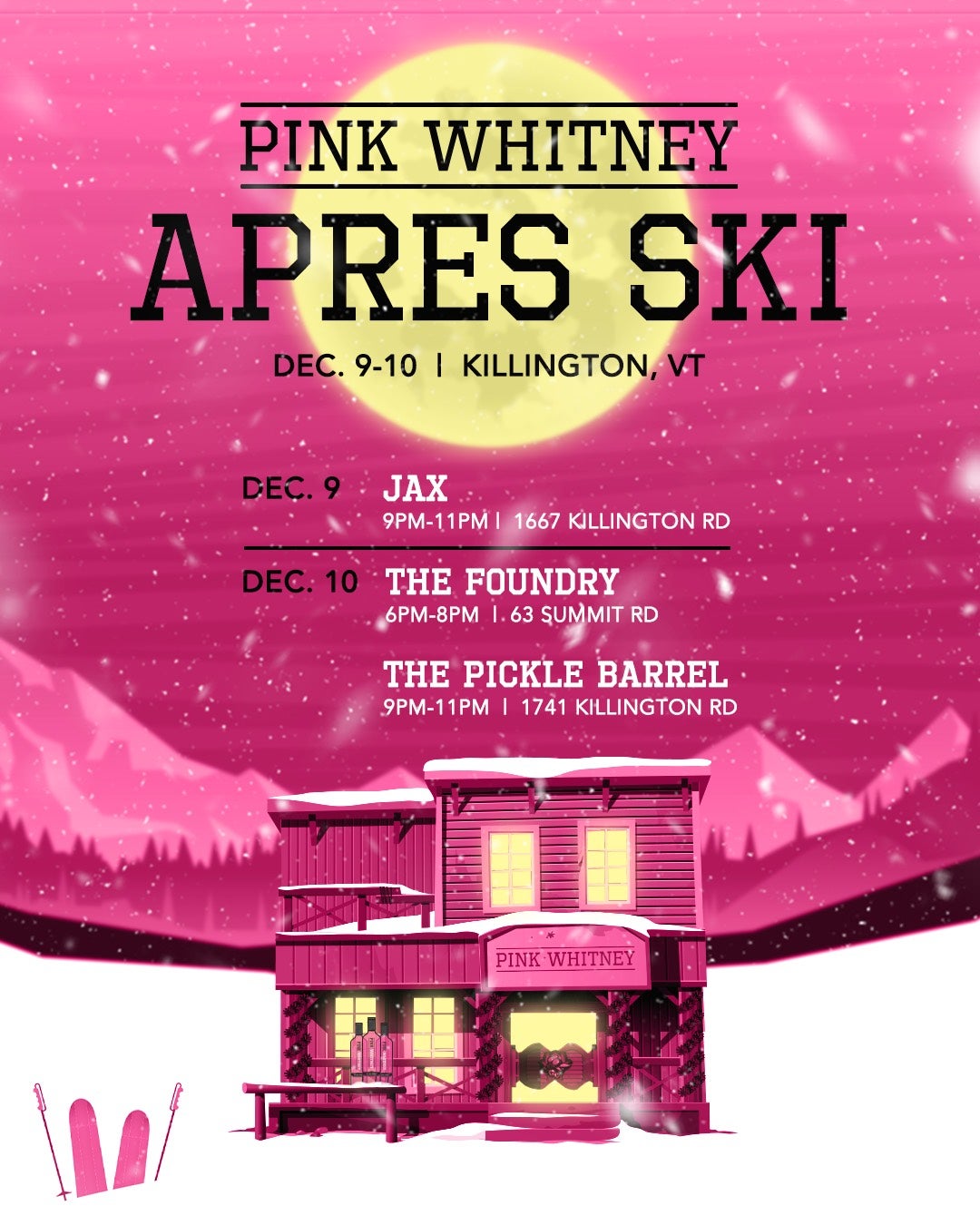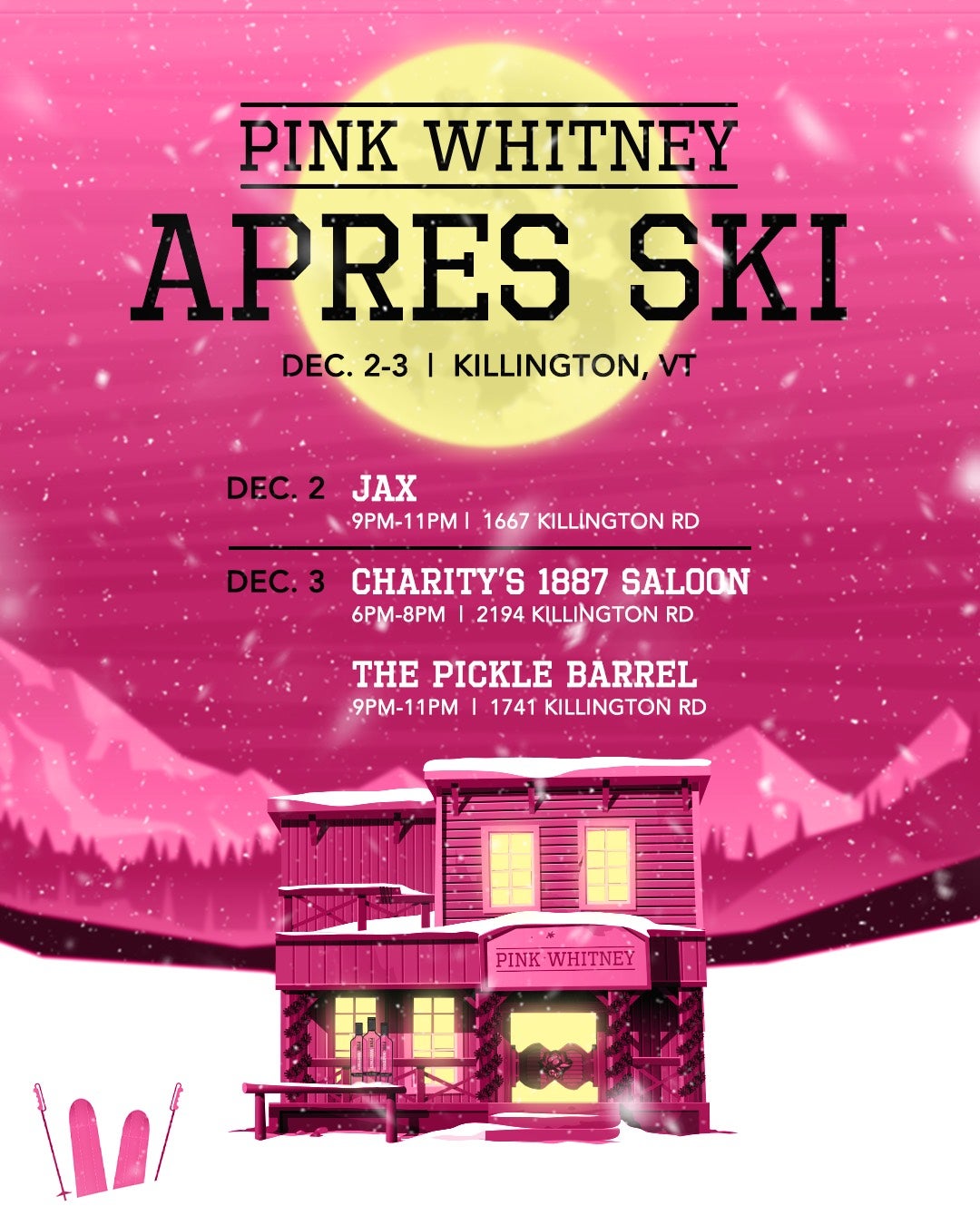 All of it has me pumped for this year's ski season. I'm sure it'll end in some sort of catastrophic knee injury, but I'm excited nonetheless. Also if you're in the Killington, VT area, Pink Whitney is hosting a bunch of parties the first two weeks of December. Here are the deets…