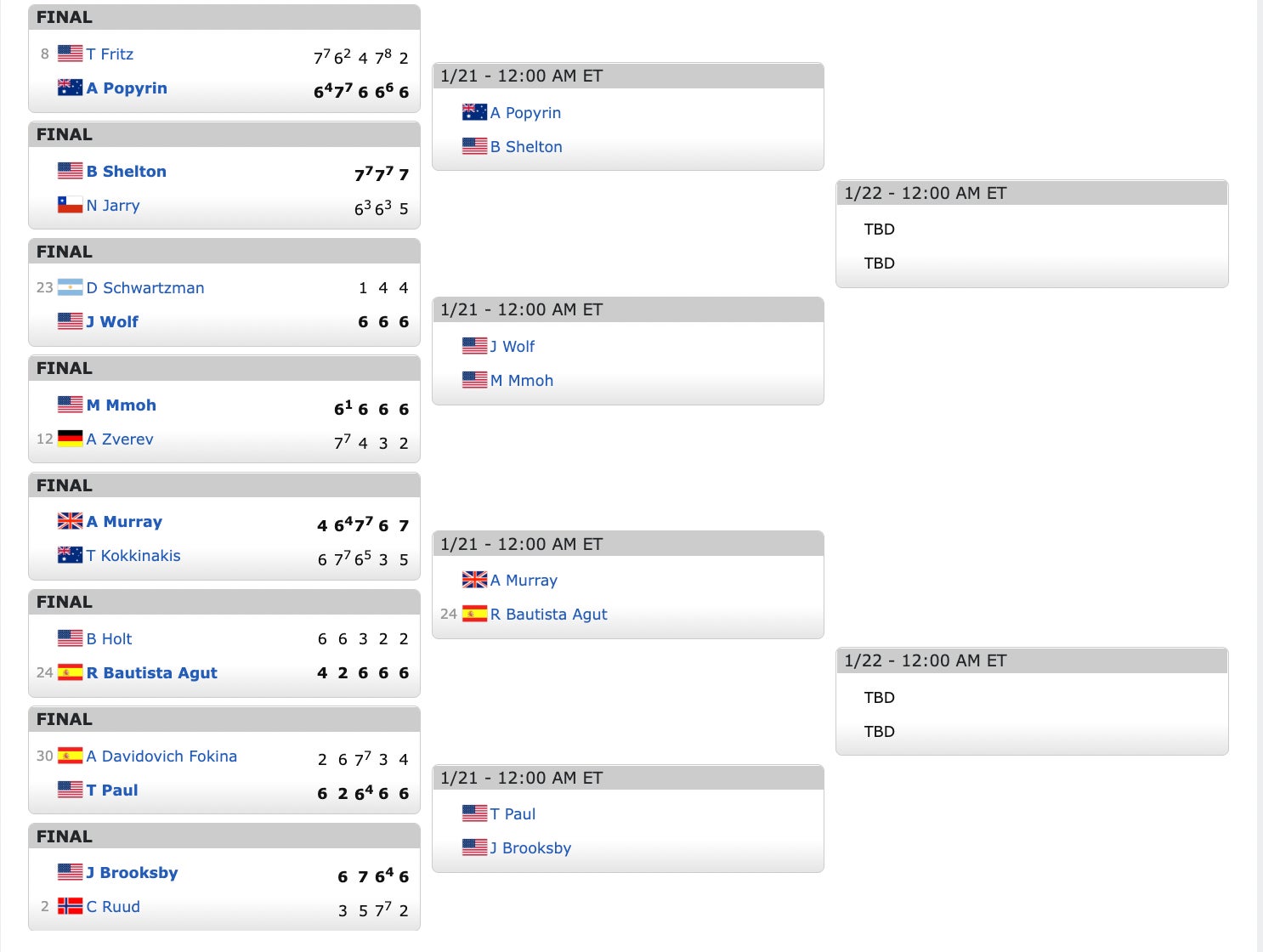 So. Many. Americans. This is the first time 20 year old Ben Shelton has been outside the United States in his life! No biggie, just in the 3rd round of the Aussie. JJ Wolf and Michael Mmoh taking out seeded players themselves. You got Americans Tommy Paul and Jenson Brooksby facing off next round as well. Just completely batshit crazy. What a tournament so far.