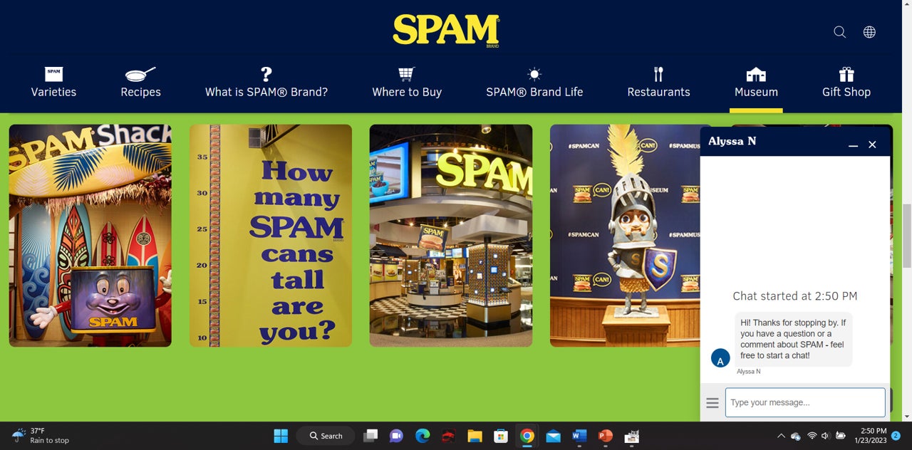 My favorite thing about the SPAM Museum is if you go to the website, you can click in the bottom right hand corner of the screen to 'Chat With A SPAM Expert'. I wanted to ask a funny question, but I didn't have the heart to mess with Alyssa the SPAM Expert. I'm sure she's slammed with plenty of serious inquiries. No need to SPAM her.