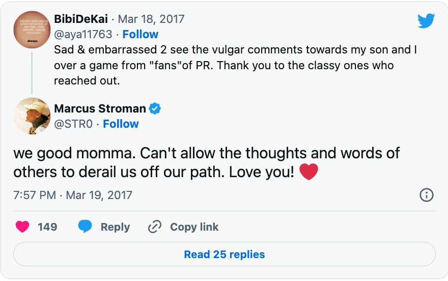 “That’s my mother. I stand by her always. She supports me through everything. I don’t respect some of the comments that were made toward my mother.” (CBS Sports)