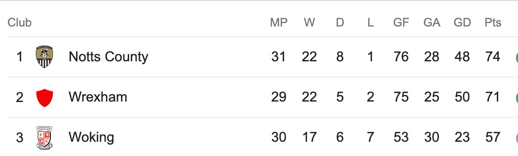 Oh and don't look now but Wrexham is in good shape to be promoted into a real league.