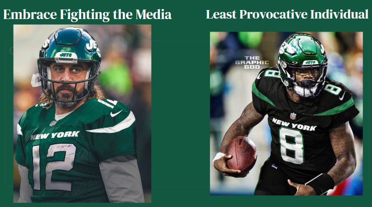 So, what can we draw from this? With free agency currently taking place and names like Aaron Rodgers, Lamar Jackson, Derek Carr (who just signed with the Saints), or Jimmy Garoppolo floating around, we really need to consider whether anyone could succeed in this town. Maybe even going with a quarterback who would be the least criticized would be better than someone who is so vocal in the media, like Aaron Rodgers. Derek Carr's personality is one that could easily be targeted by the New York media. His singing "God's Plan" at the podium after a loss won't cut it for the media, who would rather listen to Drake's version. Aaron Rodgers might even enjoy the circus because he can have more stuff to talk about on his weekly radio spots. He may be the first quarterback with enough accomplishments and personality to flip the script on the "mainstream media" and be immune to all of it because he doesn't think a single thing they say is true. Lamar Jackson is another name that is probably the complete opposite of Aaron Rodgers in that I can't remember a single soundbite of his that has ever been controversial. Like, I think the most controversial thing he has done has been in a Kodak Black music video (and he had to delete a tweet real quick).