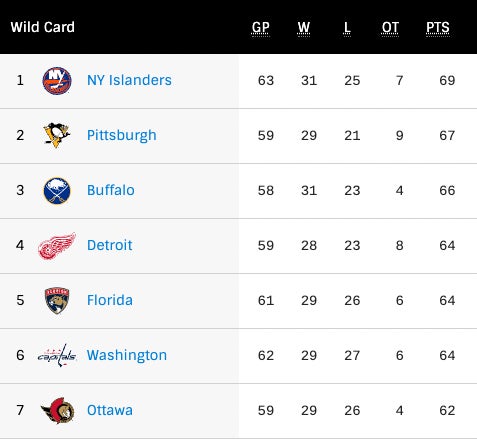 All of these teams are about to be playing an entire month of playoff hockey. Every point matters from here on out. 7 teams fighting for 2 spots, and only 7 points separates them all. But after that showing at the end of the 2nd period, I think you can cross the Detroit Red Wings out of the running. They clearly aren't built for it.