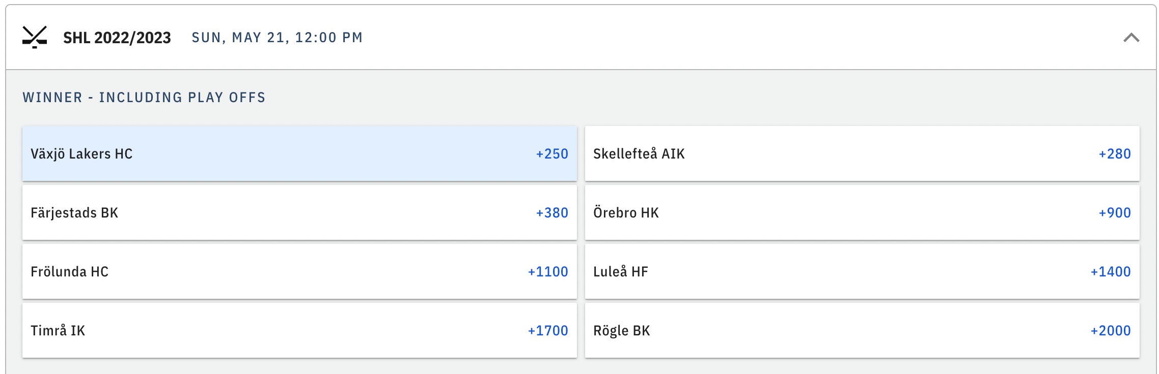 Series Odds at Barstool Sportsbook: Skellefteå -286 Rögle +215