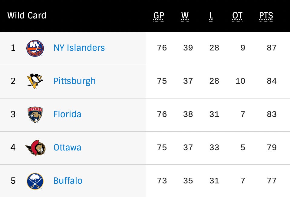 They're not completely out of the picture yet. But you can go ahead and call it a season for the Sabres. They're 3-4-3 in their last 10 games during the most important stretch of the season. They'd need a colossal meltdown from multiple teams to jump into that 2nd wild card spot. It's over for them. And this will be the 12th consecutive year that Buffalo hasn't made the playoffs. It'll be the 16th year since they last won a playoff series in 2007. We're almost at the point now where kids will be old enough to get drafted, but not old enough to ever witness the Sabres win a playoff series.