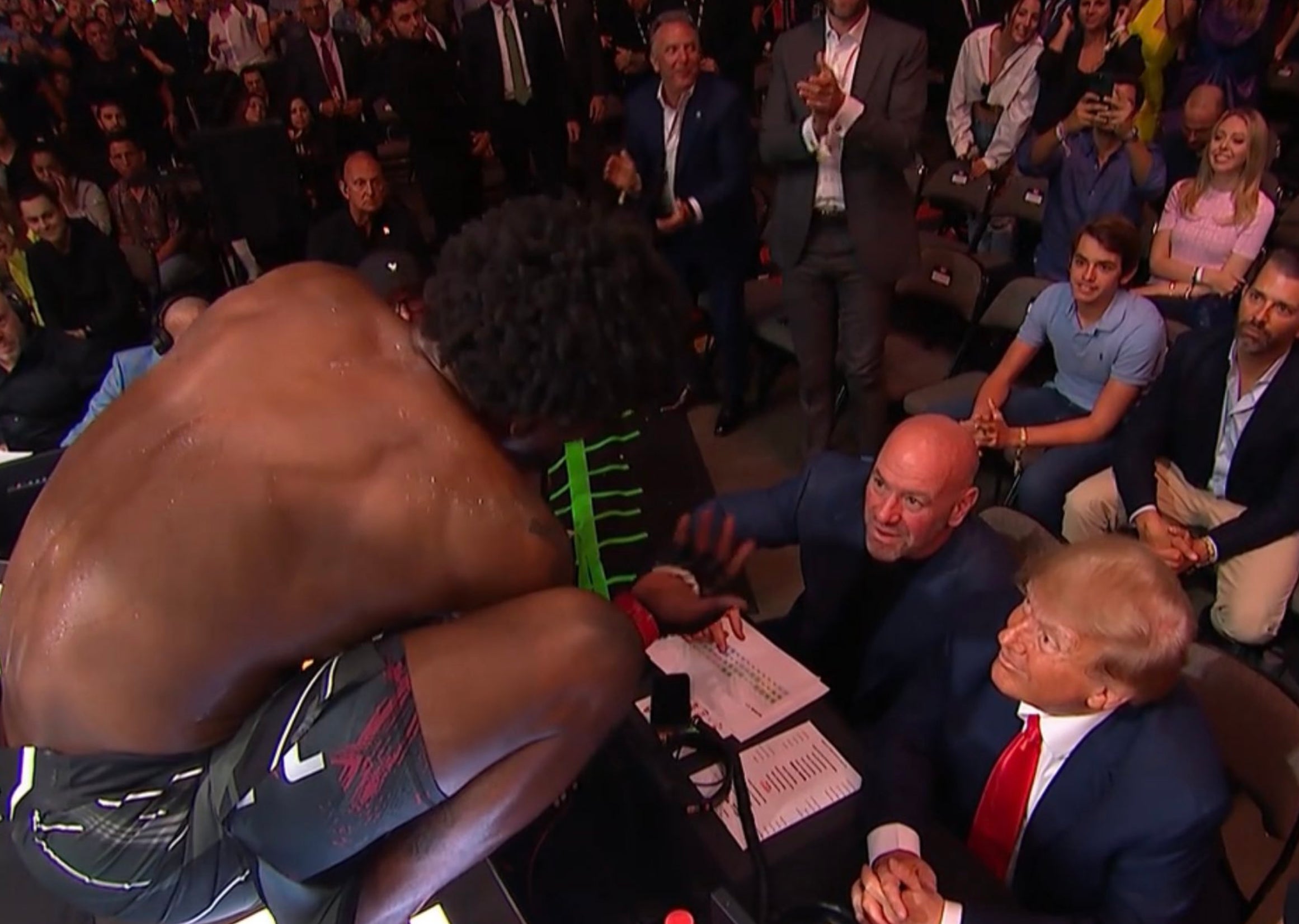 Kevin Holland even started talking to Trump mid-fight (not sure what he said, I think he might've just given a double thumbs up) and practically jumped right into his lap after he scored the win!