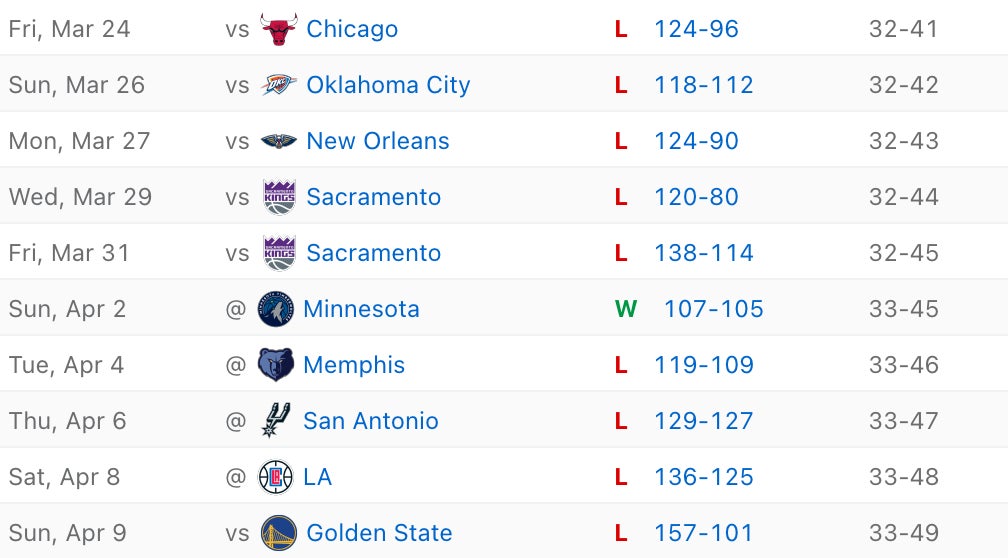 Not only that but in the East, the Pacers were in 11th as late as 3/24, right on the heels of the Bulls for 10th. They immediately shut down Haliburton and others, ending their year by losing 5 of their last 7 games. Seems like a common theme!
