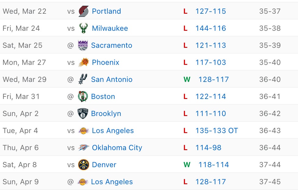 How about the Blazers? They were still in the Play In race as we entered March. Once it became clear that winning would do more harm than good, they shut Dame down on 3/24. This was their finish