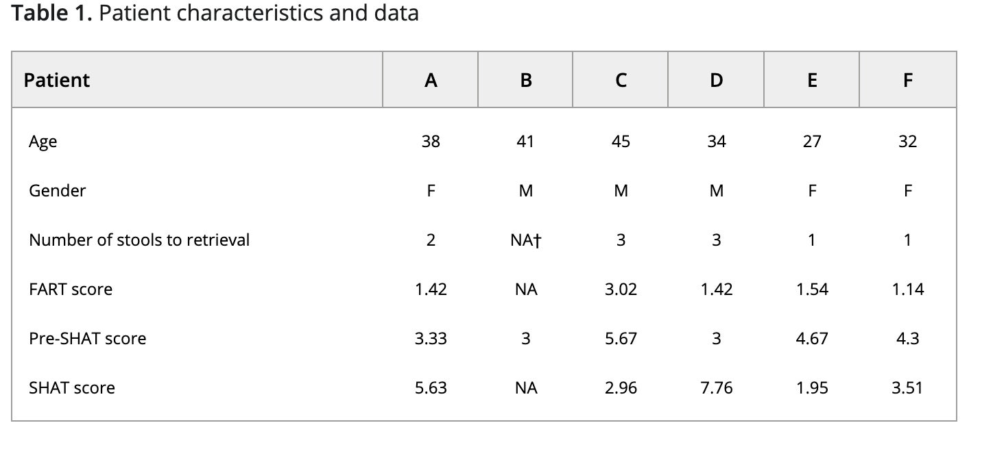Seriously … a bunch of doctors are discussing SHAT and FART and using them in real studies. What a world. The full results are documented here and have charts and data and everything. It's actually pretty thorough.