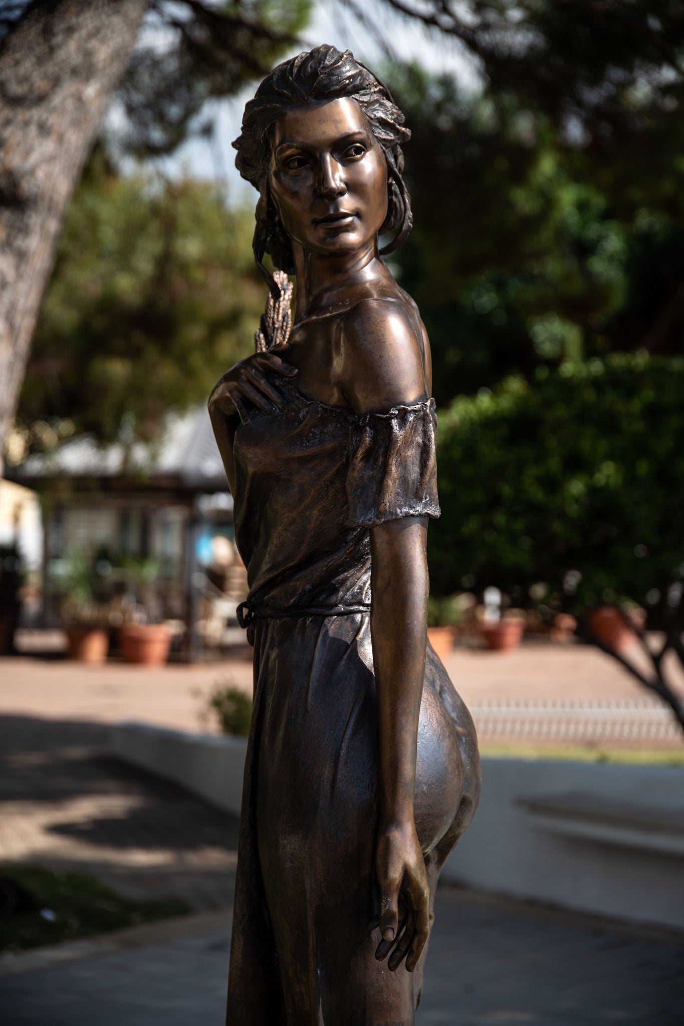 The bronze statue, which portrays the woman in a transparent dress, was unveiled on Saturday during a ceremony attended by the former prime minister Giuseppe Conte in Sapri, in the southern Campania region.