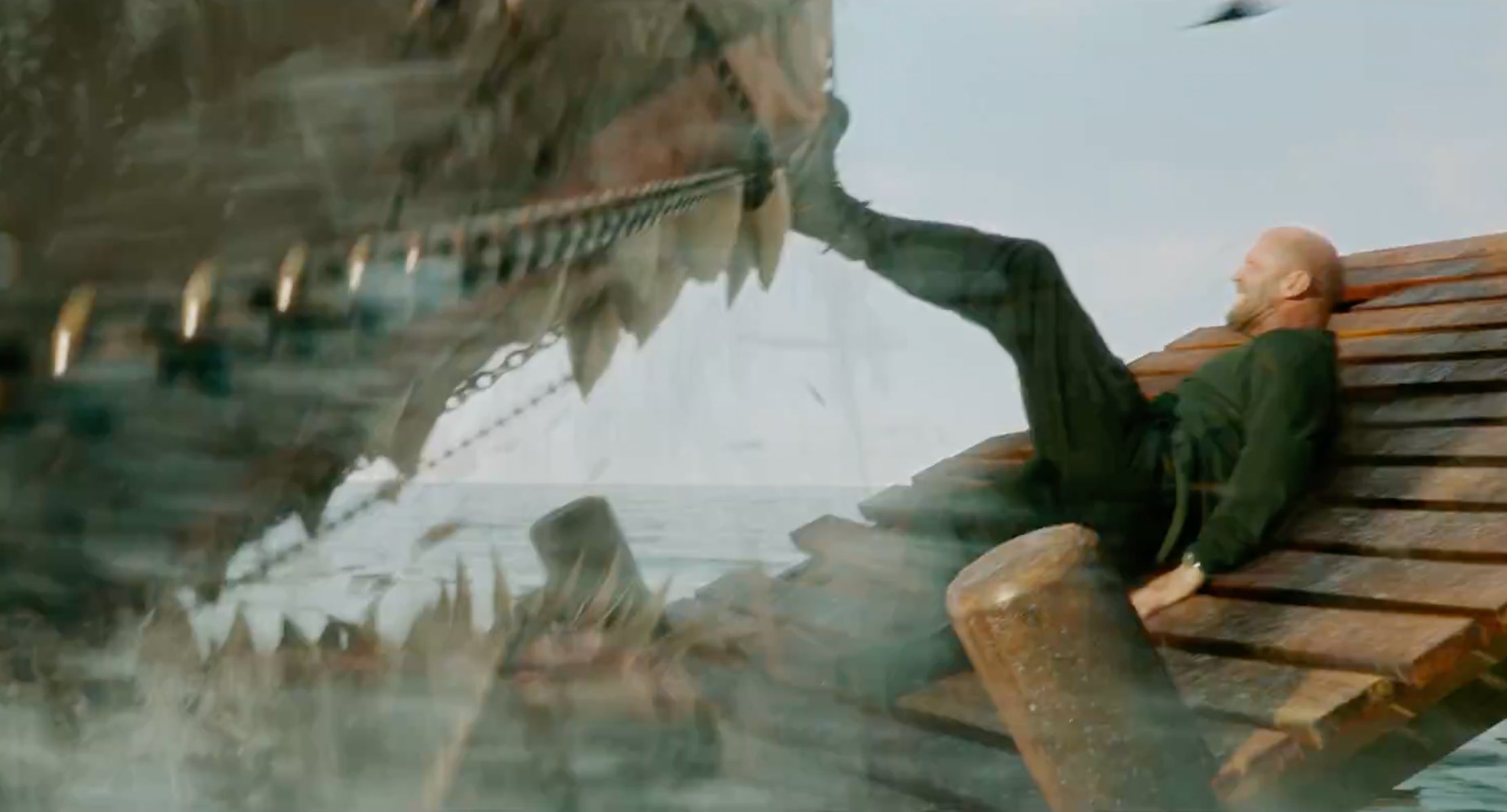 You may be wondering why they showed so much in the trailer. Okay you're probably not wondering that, but in case you are I ask what else you want to see? You're certainly not watching this movie for the plot, any twists or character development. I mean Jason Statham was riding a wave on a jetski with a spear in his hand ready to fight a giant prehistoric shark. The opening scene has a T-Rex getting devoured on the beach by said shark. This is basically Fast and Furious in the ocean with some Cocaine Bear mixed in.