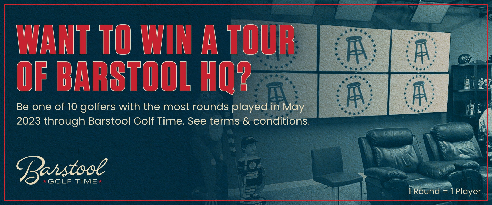 Want to win a tour of Barstool HQ? Download the Barstool Golf Time app now and play Golf during the month of May for a chance to be one of 10 winners. The more rounds you play, the higher your chances of winning are. Book the best tee times at the best prices all in one place. Leave course reviews. Redeem rewards for free Barstool Golf merch. Follow Barstool Golf Time on Twitter, Instagram, TikTok, Facebook.