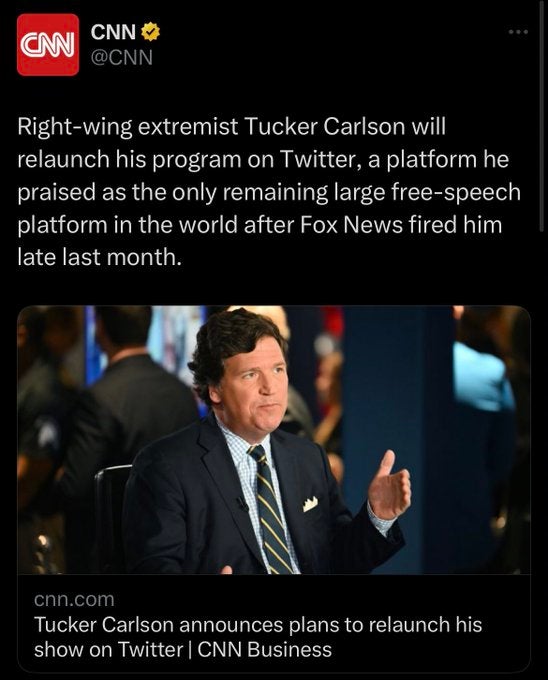 Carlson isn't the first one to take advantage of this paradigm shift. But he is the first to take it straight to a free speech platform that everyone has on their phone. And the fact that people still working for the old media are already scrambling to figure out how to censor him before he's even uttered a word? That says it all. These are interesting times, indeed.
