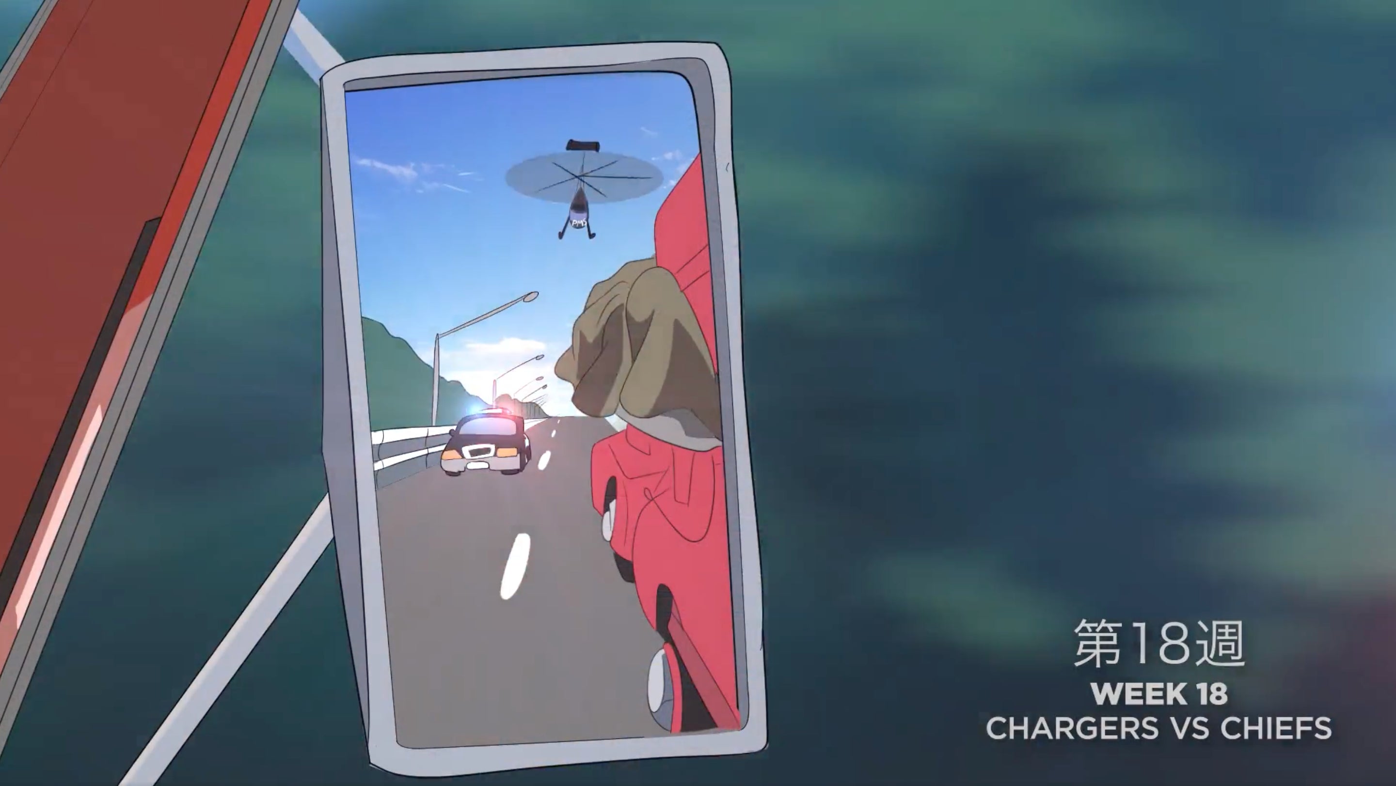 And a nice closing shot on bozo Chiefsaholic with Pat McAfee in the chopper trying to chase him down.