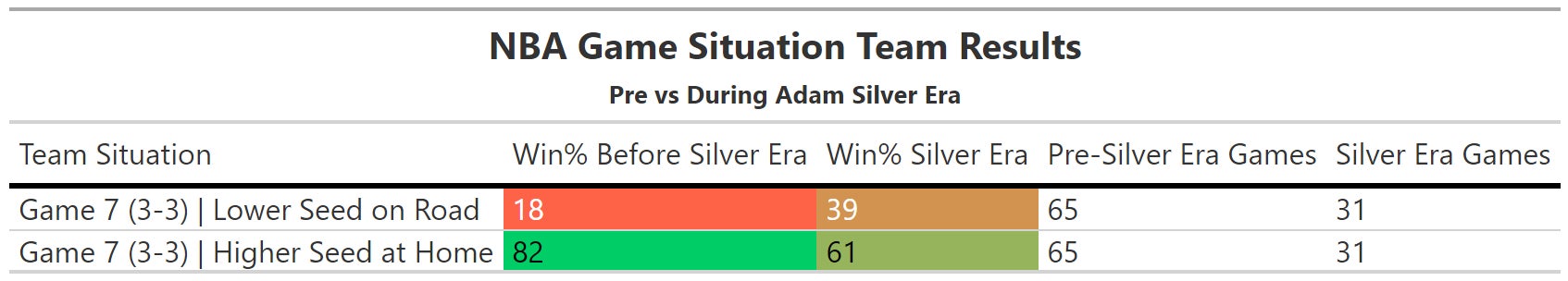 One last thing in favor of the 76ers is that since Adam Silver took over in 2014, 39 percent of road teams have won Game 7 compared to just 18 percent from 1984-2013.