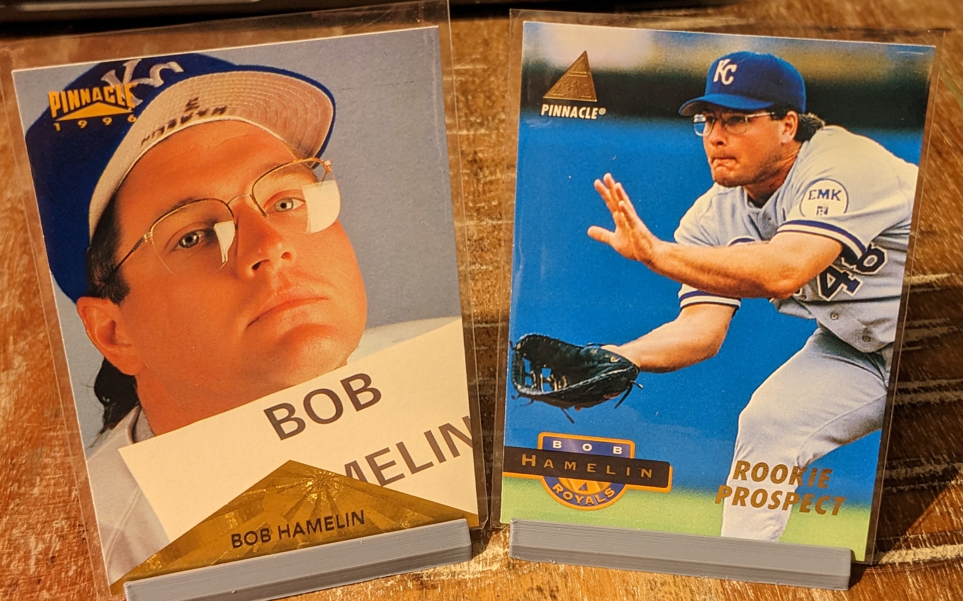 If that's the best baseball pose of all time, what's the worst? Popular consensus will tell you it's this 1996 Pinaccle Bob Hamelin (left).
