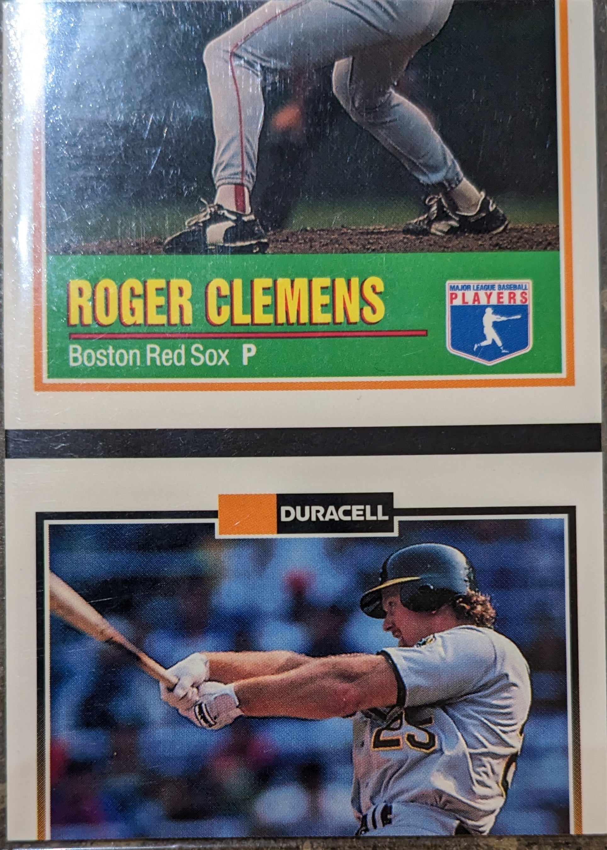 They don't make baseball cards of players wives but I still have one of Roger Clemens' better half. That's Mark McGwire below so the plan is to somehow get this miscut card autographed by both players one day.