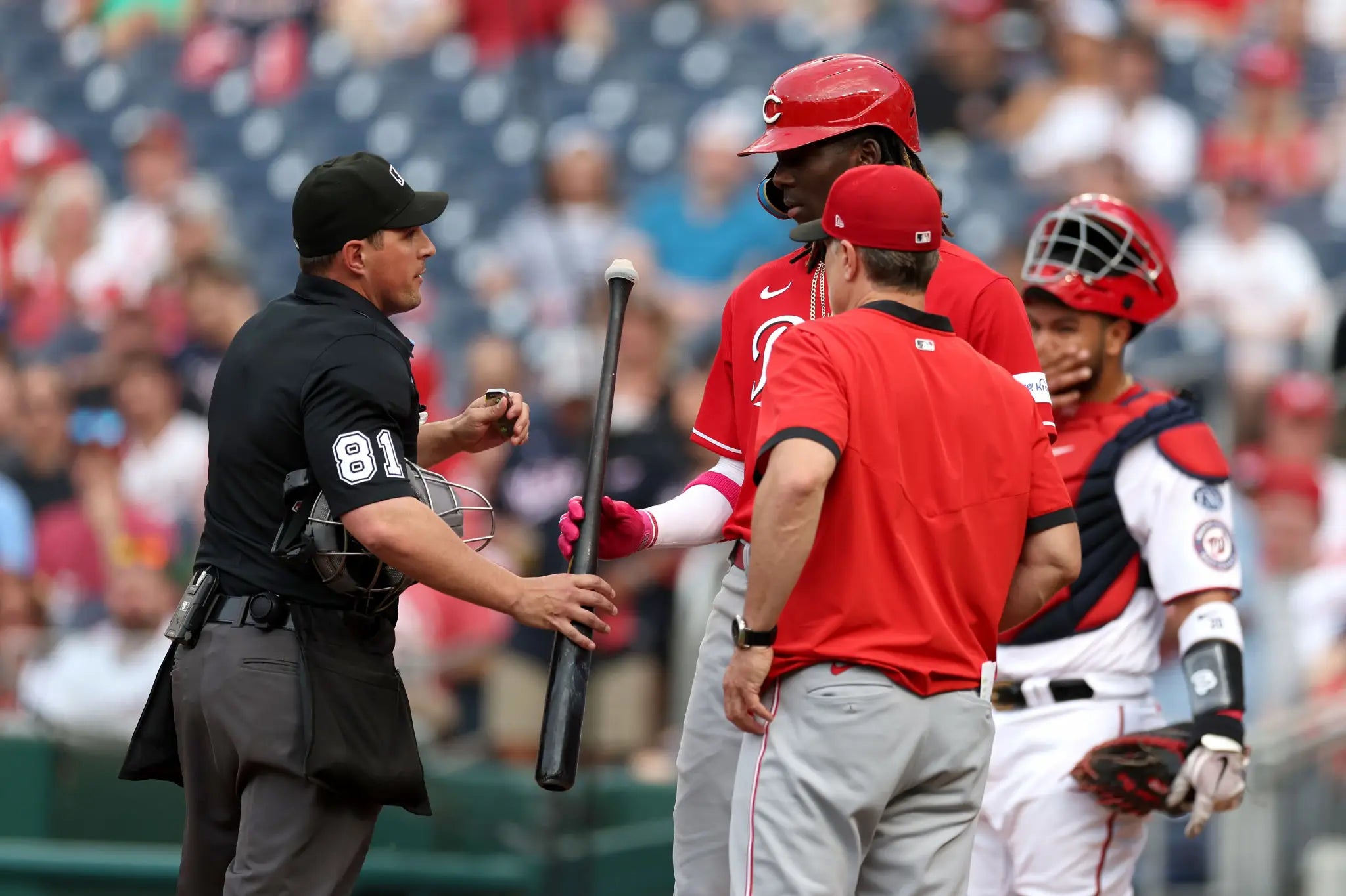 Well, heading into tonight's game no one really had questioned his God given abilities. We all just assumed he was made in a lab with a concoction that included the best of every athlete. Today Davey Martinez attempted to take a stand. Someone had to stop this mad man. He wondered if this magical knob at the end of Elly's bat was the key behind his immense power. Imagine this thing was pumping all sorts of magic power into the bat? Fun sponge Davey Martinez stopped play and had him checked.