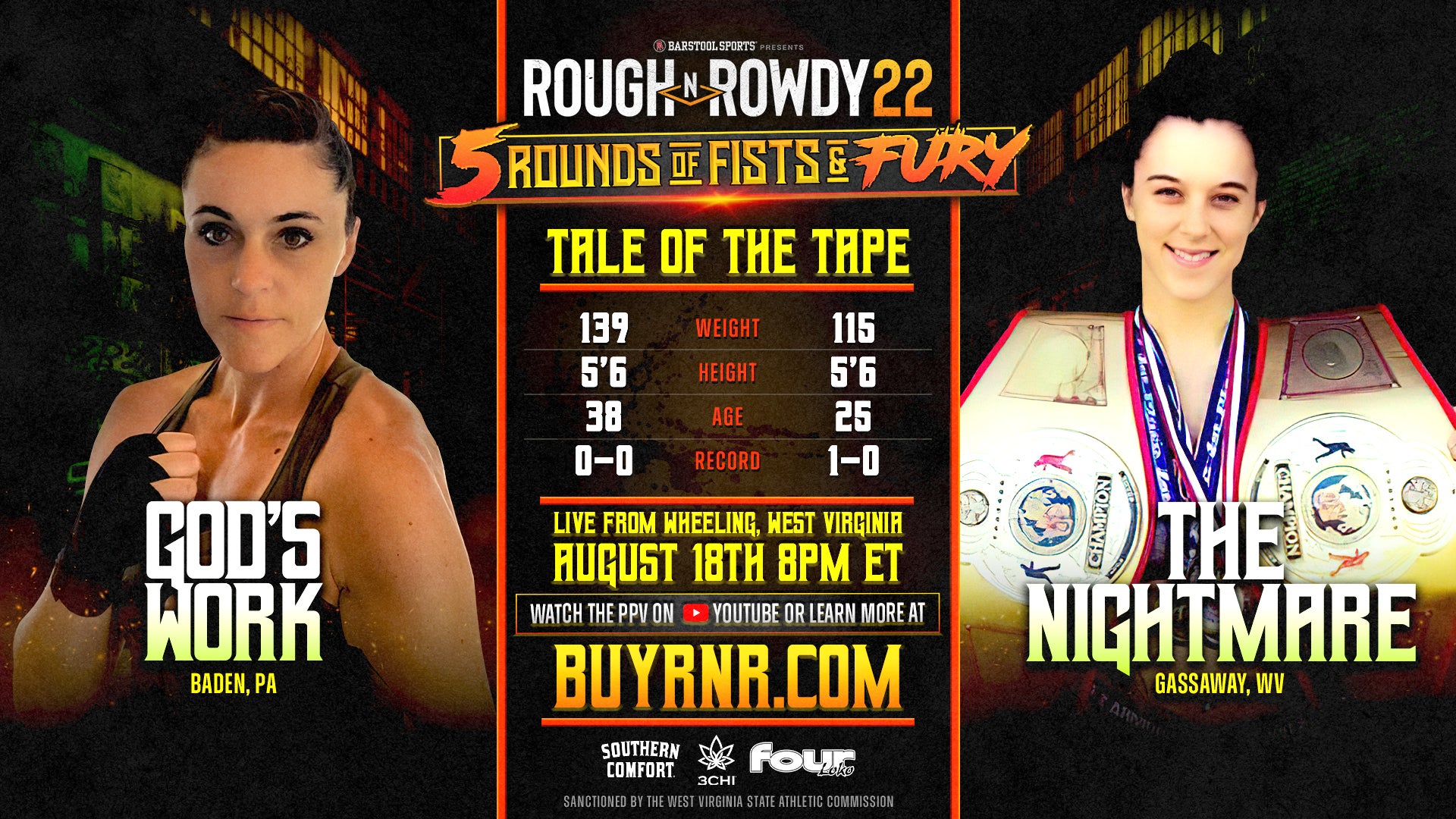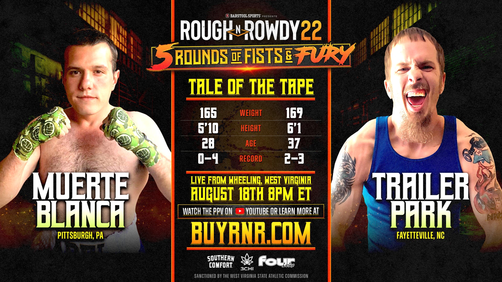I was asked to write a blog to promote Rough n' Rowdy. They sent me an Excel sheet with every fighter's name, nickname, a random fact, and their occupation. There's also a Twitter thread somewhere that includes videos to go along with some of the fights. But instead of worrying about those, I'm just going to make rash judgments about these heathens based on the minimal information I was provided. Here are all 20 fights