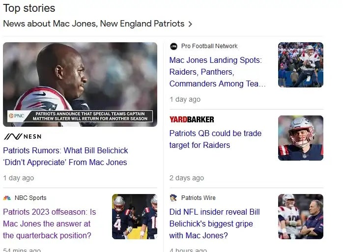 Looking back, I find that I enjoyed every second of that ridiculous ride, just for the pure madness of it all. The utter ridiculousness of the idea that Zappe was going to dethrone Jones on the basis of his Western Kentucky career and 10 reasonably acceptable quarters in the NFL.