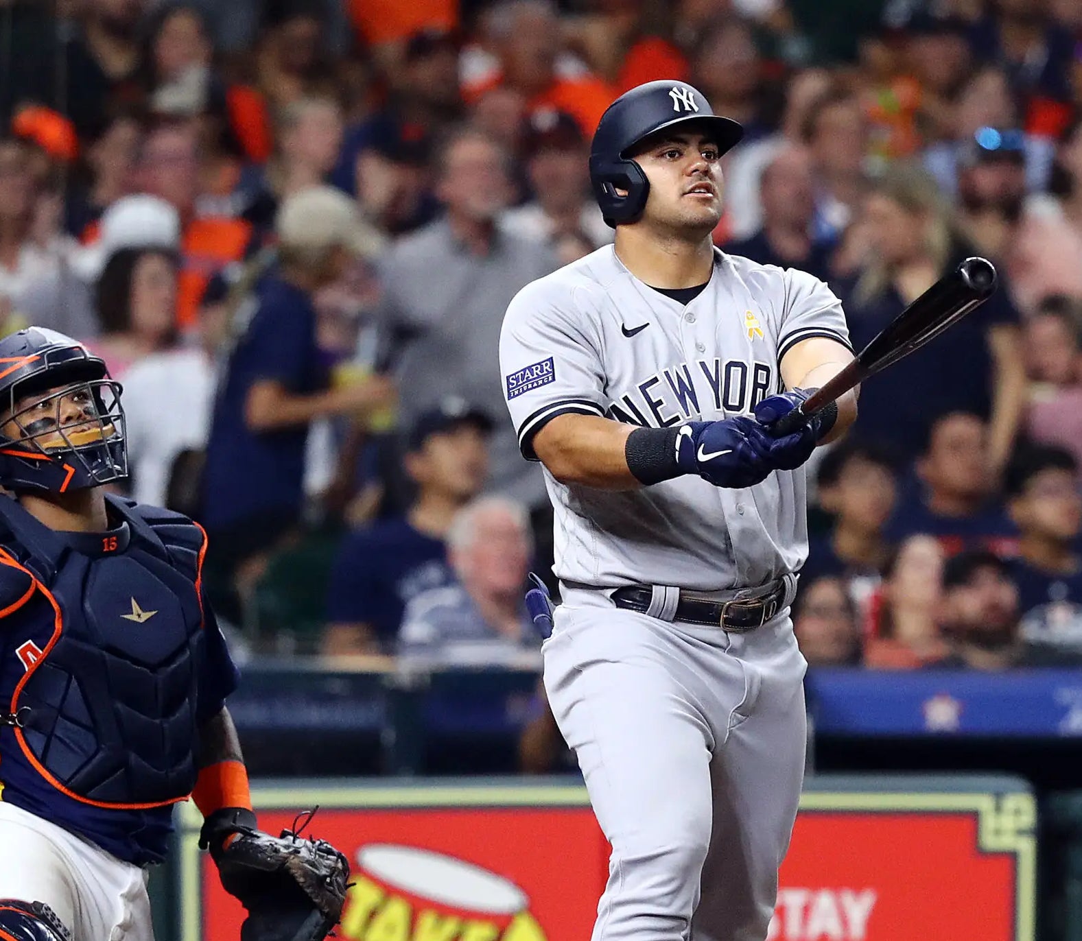 Last night in the 6th inning of a tie ball game he launched this moon shot off of Cristian Javier. Think that swing will work at Yankee Stadium?