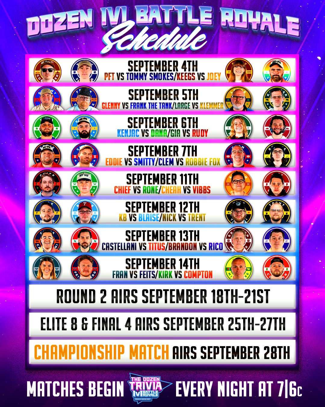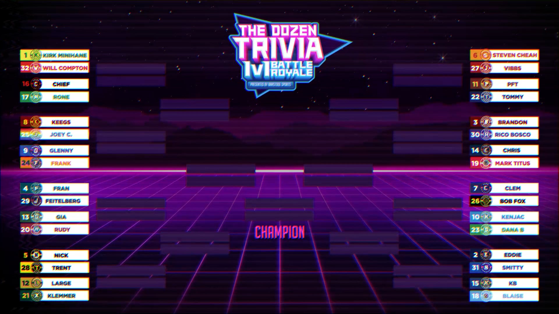 We are excited to give you this Tournament as a little preseason hype as we lead up to Season 4 of The Dozen: Trivia League kicking off with the Play-In Tournament in October, and then the regular season in November.
