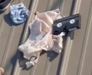 Then came the bras & panties. Kudos to whoever Mel is because she appears to have the biggest set on the roof so far, and also, not underwear related but I'm dying to know what's on that VHS tape resting gently on that peach lingerie??