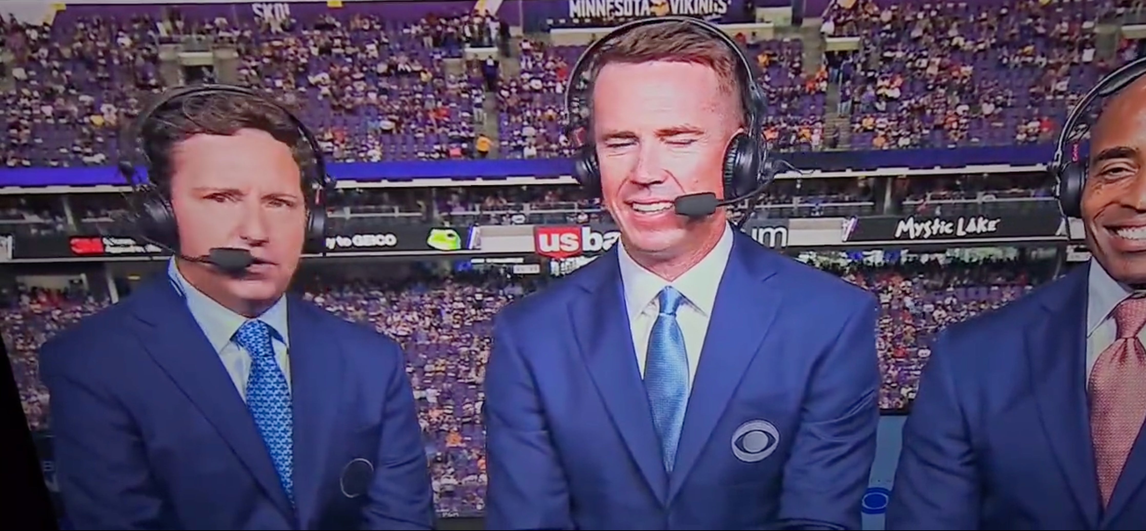 Matt Ryan Couldn't Even Make It Through His First NFL Broadcast Without Hearing "28-3" From Someone In The Booth