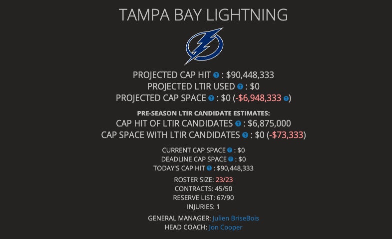 Bruce Bennett. Getty Images.Life was great just a few short seasons ago. The Tampa Bay Lightning were reigning Stanley Cup Champions. Sure, Nikita Kucherov had missed the entire regular season but he was miraculously healed up just in time for the puck to drop in game 1 of the first round. The Lightning went into the 2021 Stanley Cup Playoffs at a staggering $19.7 million over the salary cap, but that didn't mean a damn thing because the cap goes away in the playoffs. So with the most expensive team ever assembled, the Bolts went on to spank the shit out of everybody on their path to becoming back-to-back Stanley Cup Champs.