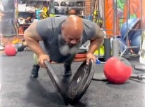 Most gyms would probably make you sign a waiver before trying to do pushups like that. Last thing they need is a lawsuit on their hands after you snap your wrists and cave your face into the ground. This is probably just Darren Swift doing a cool down.