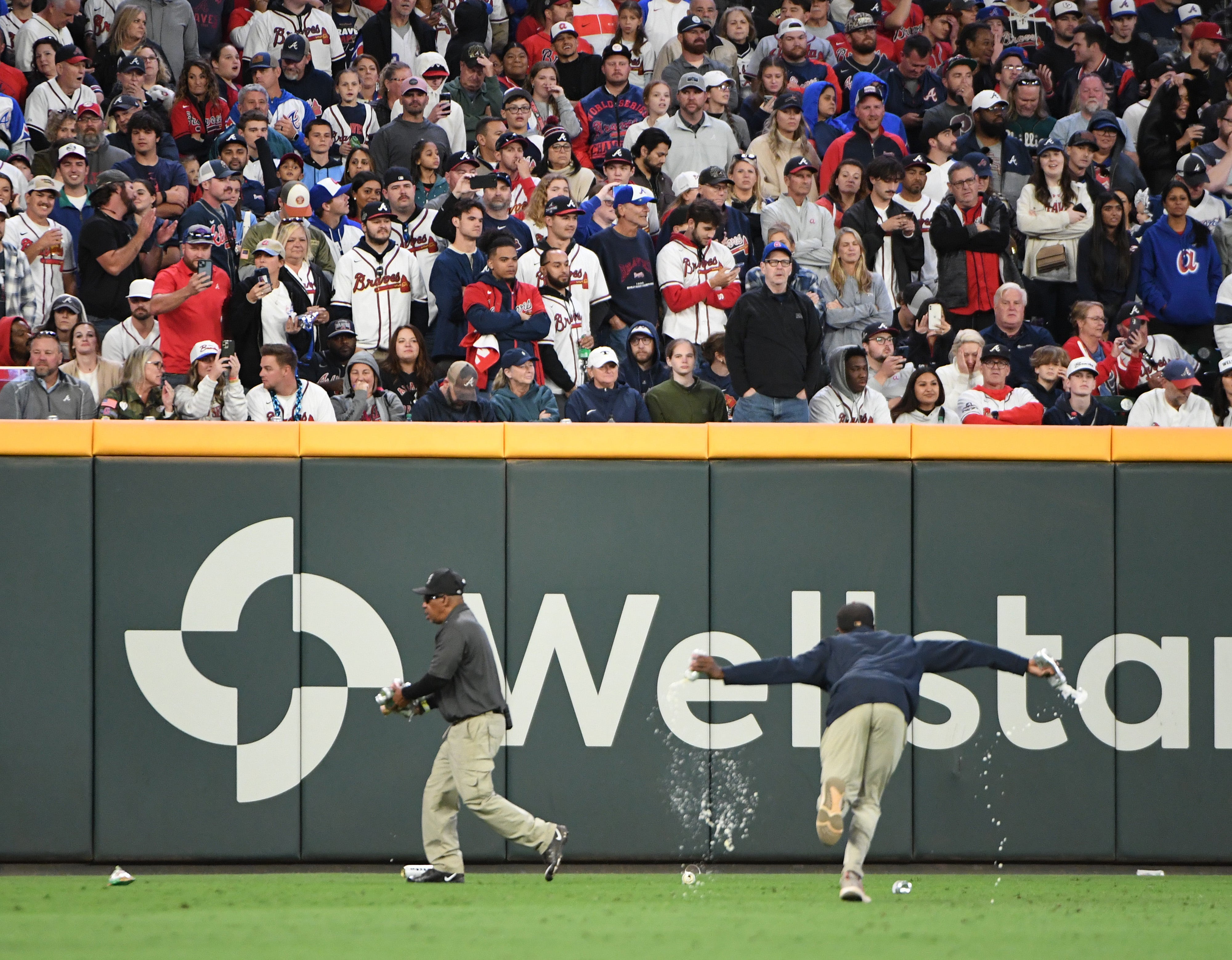 Deplorable behavior. I don't care if your team got screwed by that call or not, everyone in the building should have immediately given the umpire there a standing ovation for making the correct call. What a big dick call to make in a big dick moment of a massive game. To make that call and have it be 100% correct is some sicko behavior. But do Braves fans care about how good that call was? No chance. They're selfish pricks who piss and shit in their pants when things don't go their way, so they immediately resorted to all their little pea brains know to do--launch every bit of trash they have onto the field.