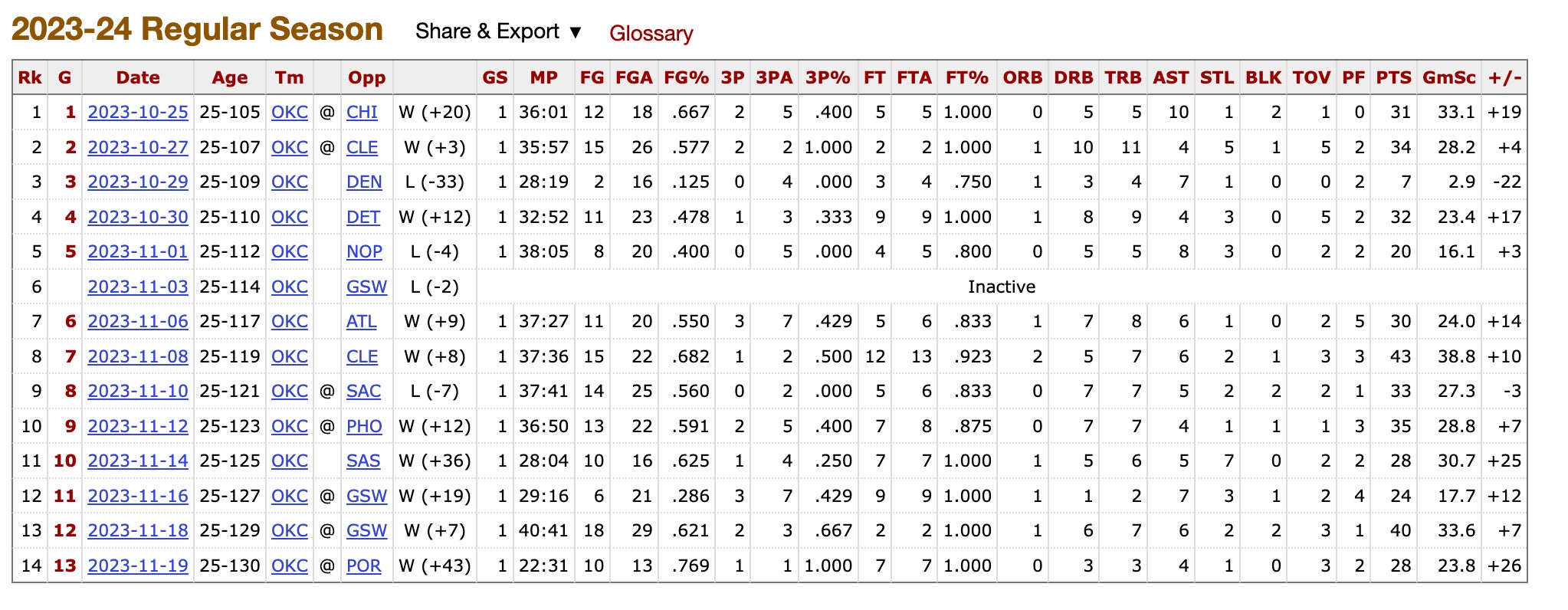 is what separates SGA from some other guys who love to get loud after big wins. In fact, SGA might be one of the most consistent stars we have in the entire league. Just look at his start!