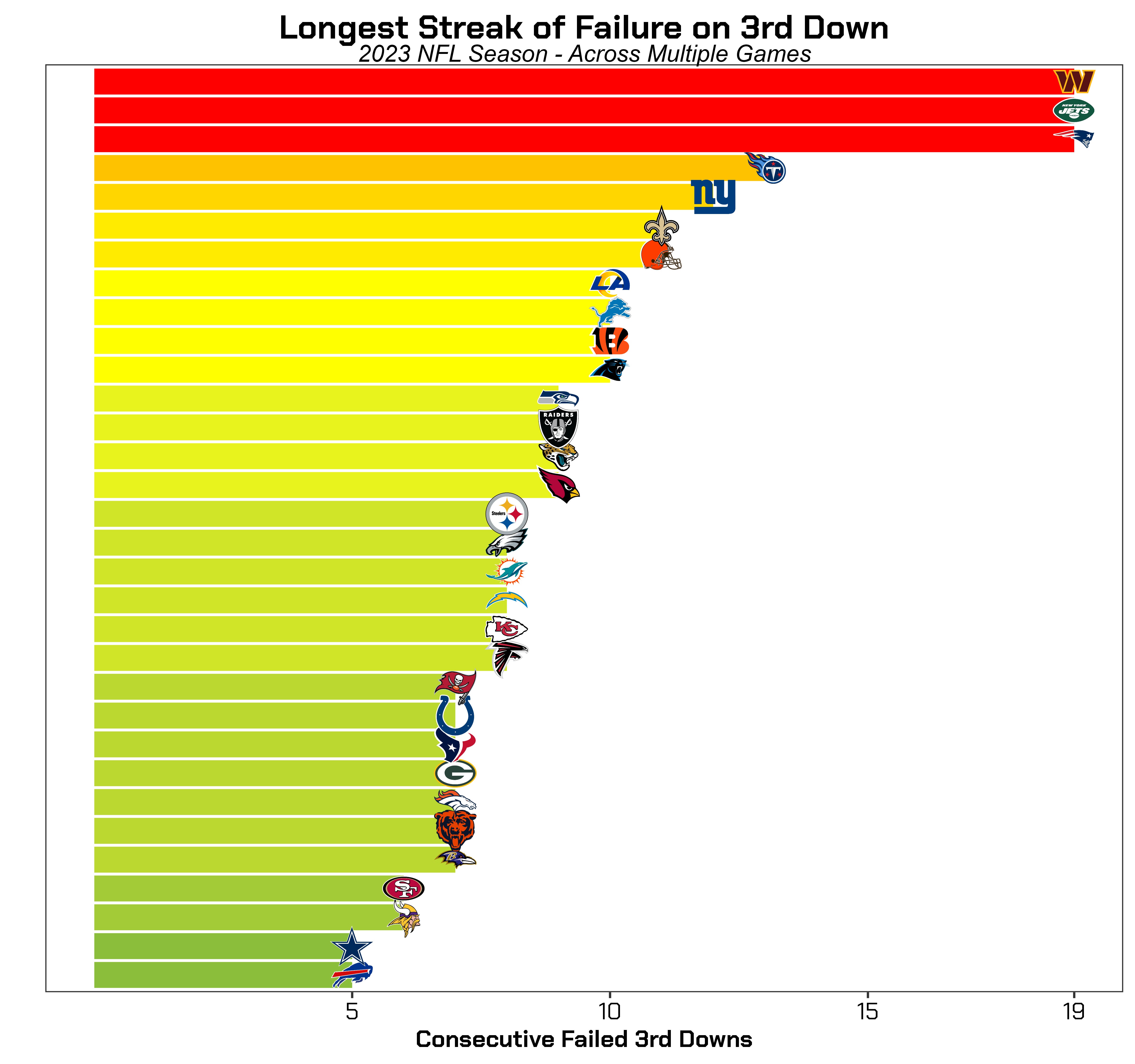 Sad Stat #2: The Jets joined the Commanders and Patriots as the only teams to go 19-straight third downs without a conversion